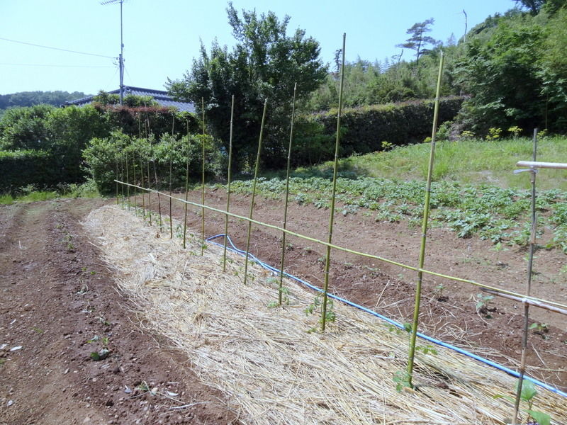 畝をたてずにアオダイズと黒ダイズダイズを蒔いた所は雨水がたまっています。畝を立てるべきだったのかもしれません。排水用の溝を掘って速やかに水を流しましょう。。
