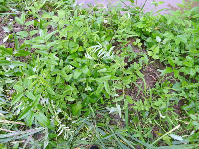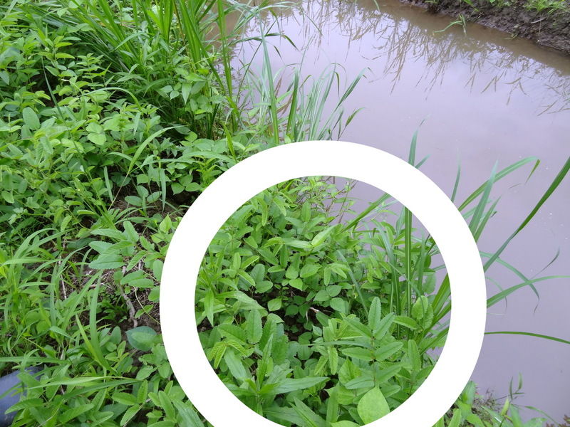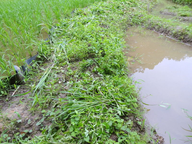 下のビオトープ側の畦の側の稲株にはイネクロカメムシがついていました。手でつぶしましたが、どうしたものか?