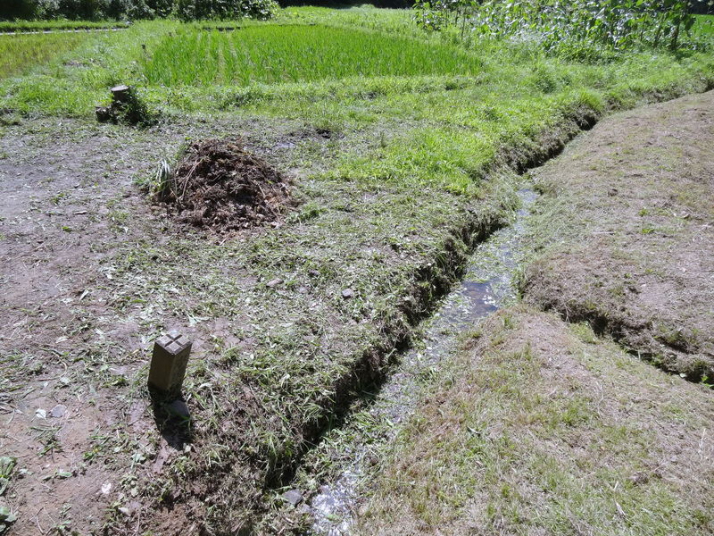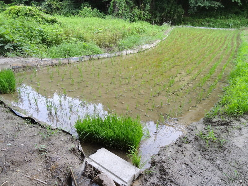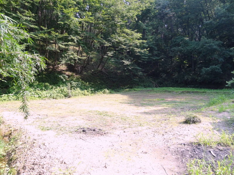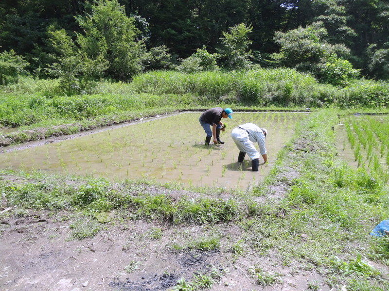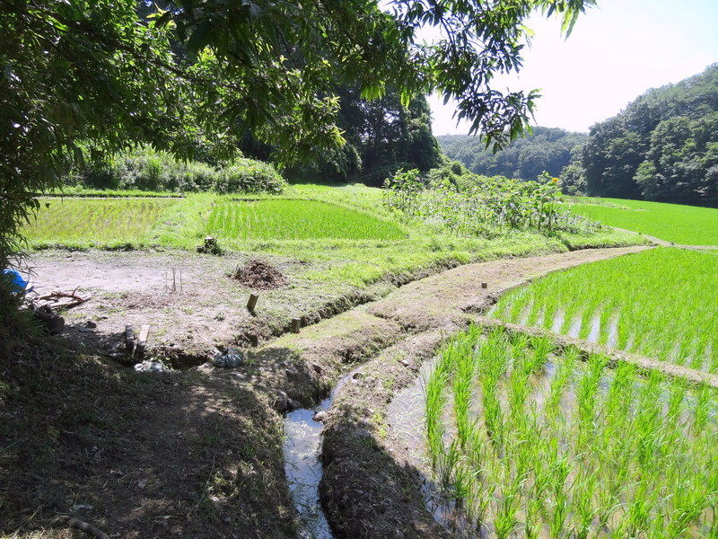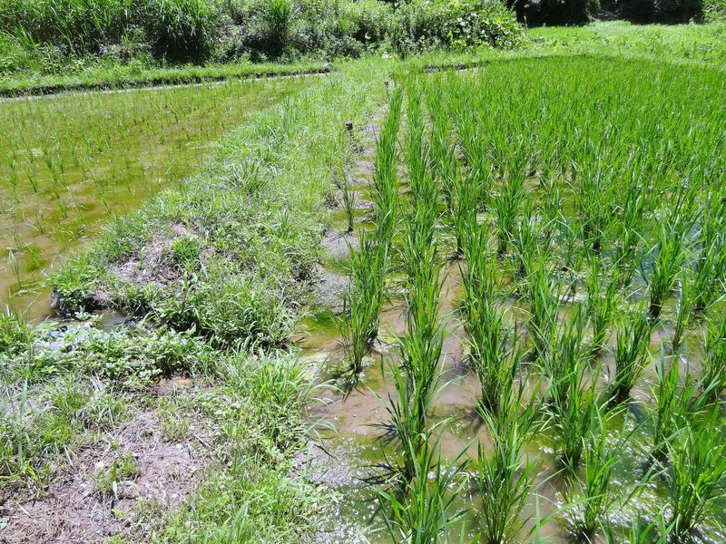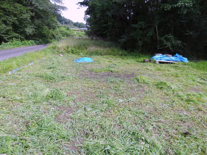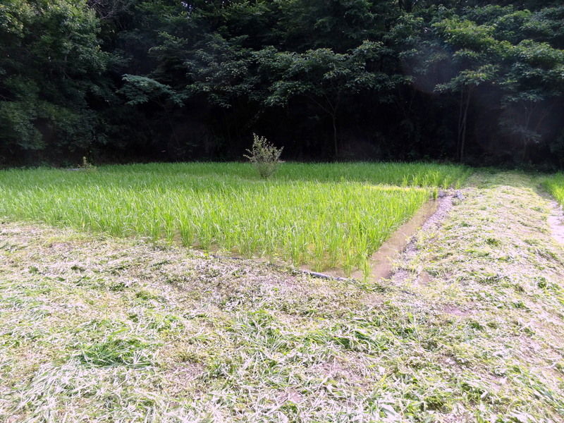 児沢の下の田んぼの除草、午前11時過ぎまでと午後3時頃から再開して終了しました。これで児沢の3枚の田んぼの2回目の除草が終わりました。