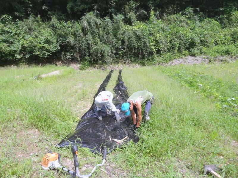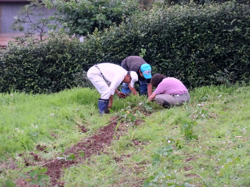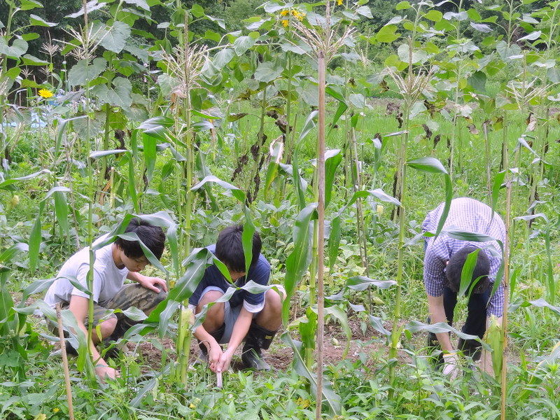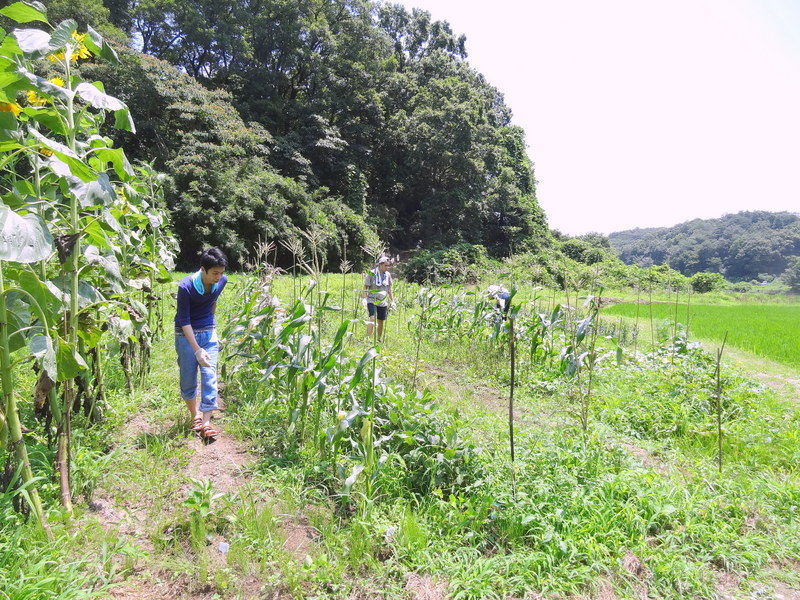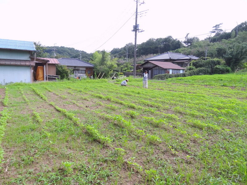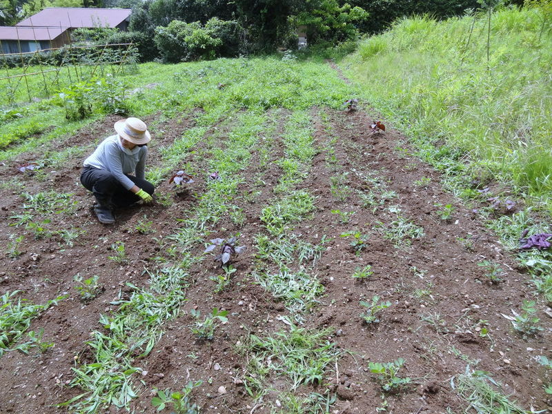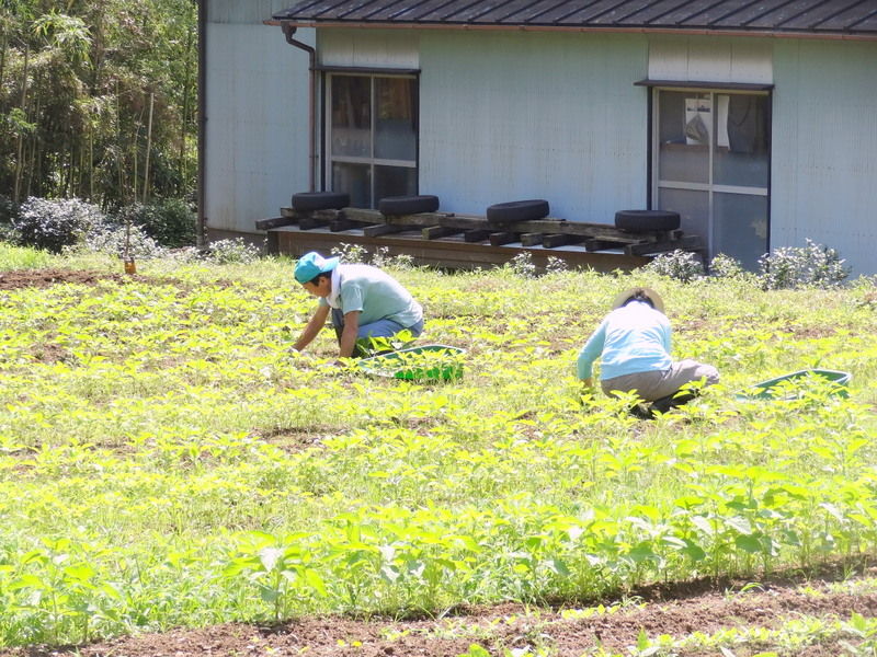 今日、関東地方は梅雨明けしました。澤田さんはC地区のダイズ、細川さんは児沢の畑のゴマの作業をしました。一人作業の時、無理をしないで、水分と休憩をとって、熱中症に注意しましょう。