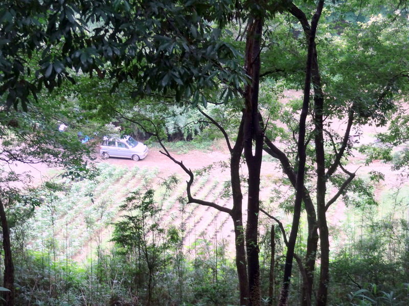 暑い一日でした。晴れの日の正午近く、暑い時間帯にタマムシが飛び回るといいますが、まさにその時間帯に児沢の下の畑の脇の梅の木で休憩中、見つけました。