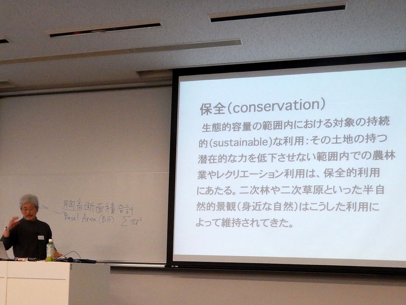 講演は吉長成恭(よしながはるゆき)さん(日本演芸福祉普及協会理事長)「園芸福祉・園芸療法の可能性」と廻谷義治(めぐりやよしはる)さん(千葉県市民農園協会理事長・千草台園芸サークル会長)「市民農園と地域とのつながり」、休憩をはさんで、座談会「これからの市民農園・福祉農園」(登壇者:吉長さん・廻谷さん・土と風の舎代表渋谷雅史(しぶやまさし)さん、進行役:粕谷芳則(かすやよしのり)さん(日本園芸福祉普及協会事務局長)がありました。