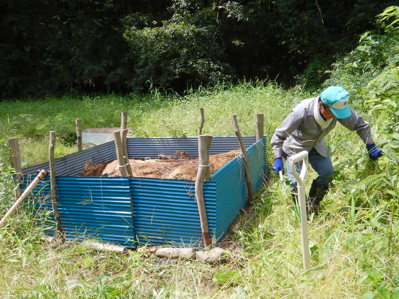 イノシシ捕獲のための大きなワナも置かれていました。地元の方のお話しによると、シカがでるようになったので、防除柵を高くしたそうです。