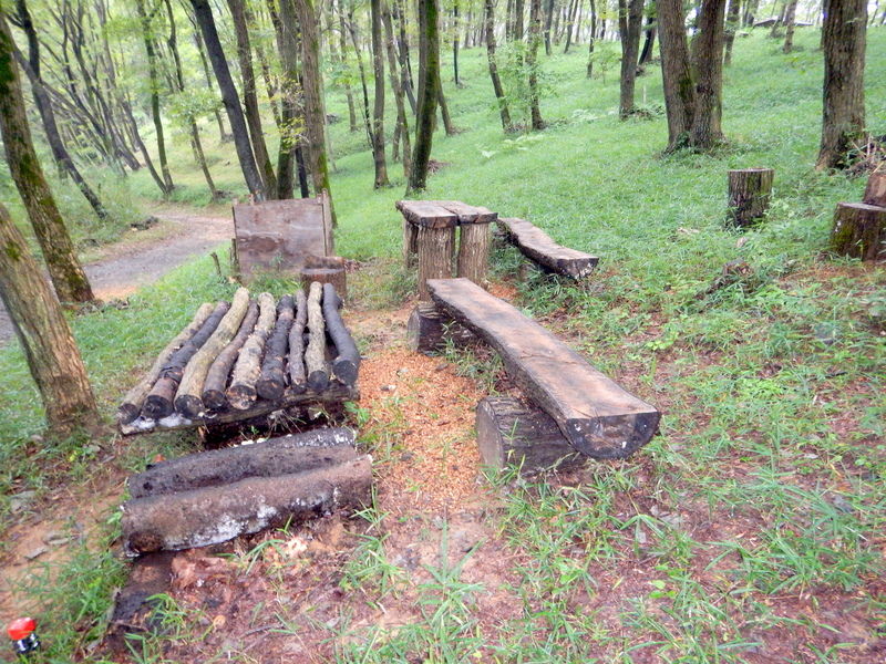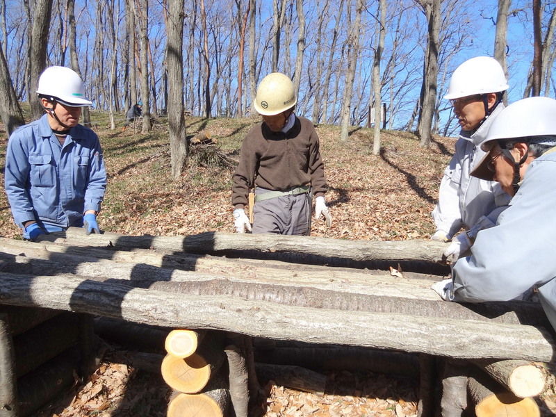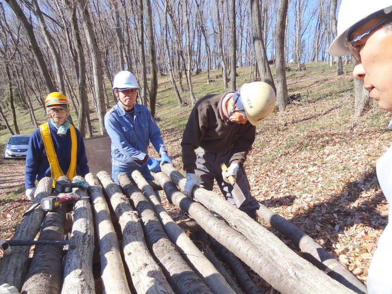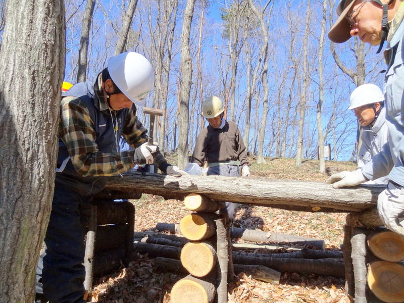 作業エリアにおいてあった伐採木を利用したテーブルがくずれていました。