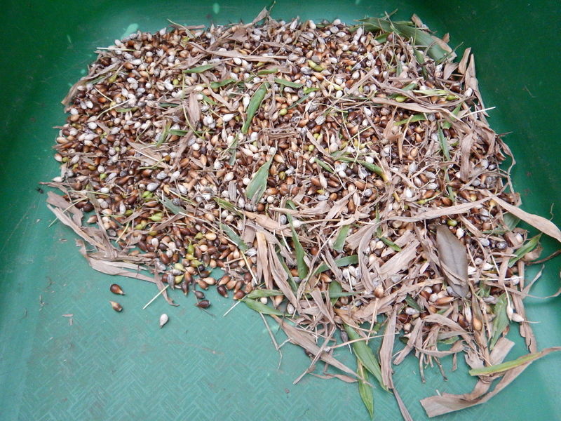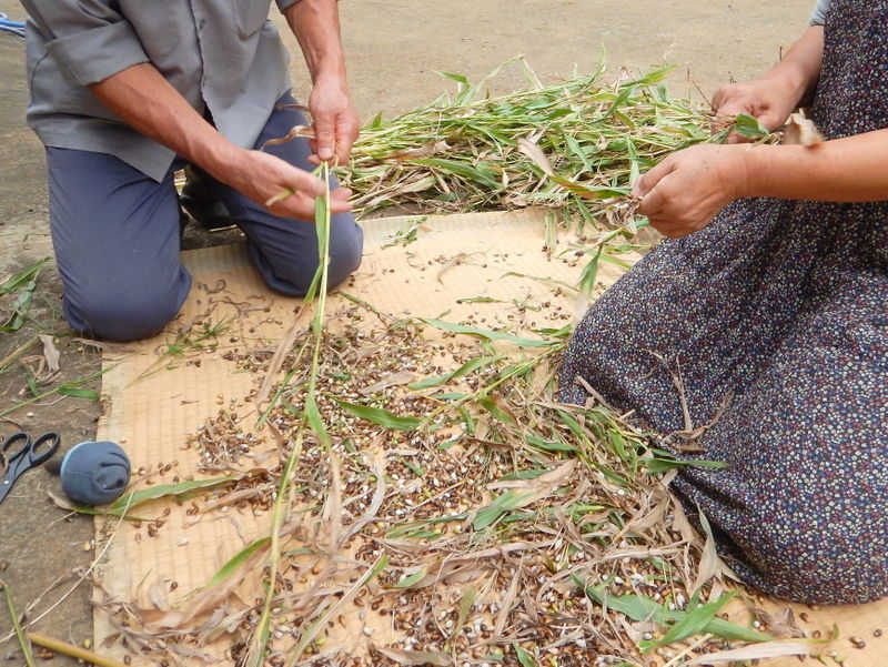 岩殿C地区の奥の再生農地に5月15日にまいたハトムギを収穫しました。