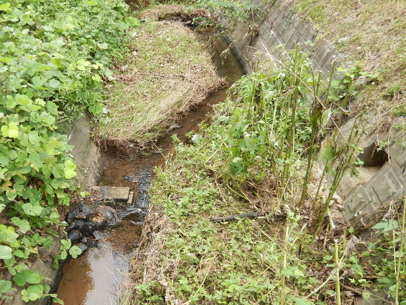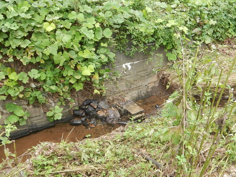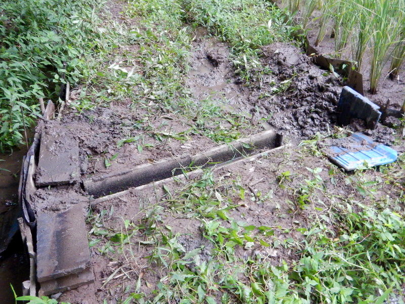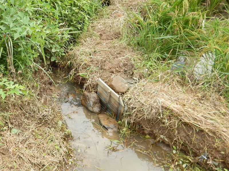 岩殿B地区の上の池が、先日の大雨で埋まってしまいました。入山沼から流れてくる水路の取水口を閉め忘れたので、水流がストレートに池の入り口がぶつかり、入り口に使っていたU字溝を動かしてしまいました。奥の出口の部分も壊れてしまっています。入り口も出口も壊れた状態で、水と一緒に運ばれてきた土砂が堆積し、水深3㎝位になりました。2月16日にユンボで掘った池ですが、農閑期に再度、作り直します。