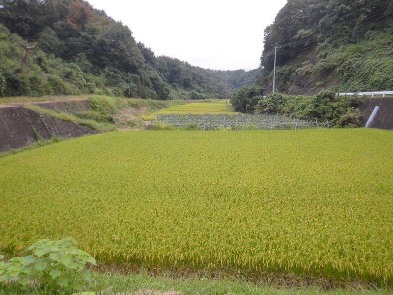 山頂からは富士山地区の棚田は見えませんが、東側には一面の黄金色の田んぼが見渡せ、山下のコンニャク畑が見下ろせます。