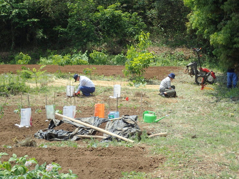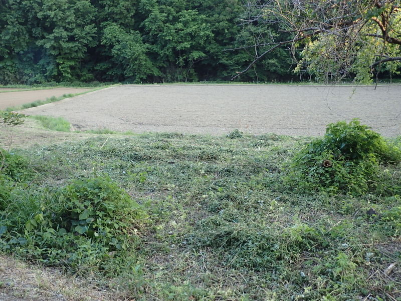 1番上は2回目、2番目と3番目の畑は今日が初回です。3番目は18日に刈払ってそのままにしていた緑肥を片づけた後、吉田さんは昼食に帰宅し、午後また来て作業してくださいました。