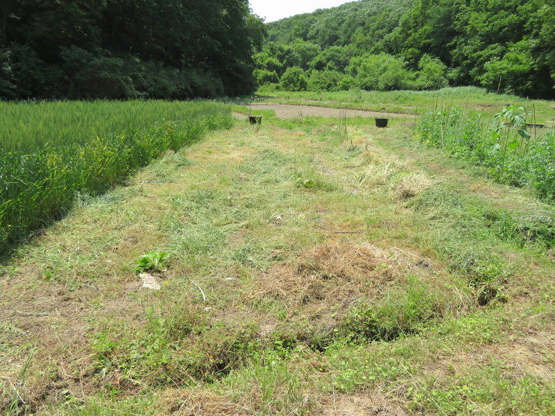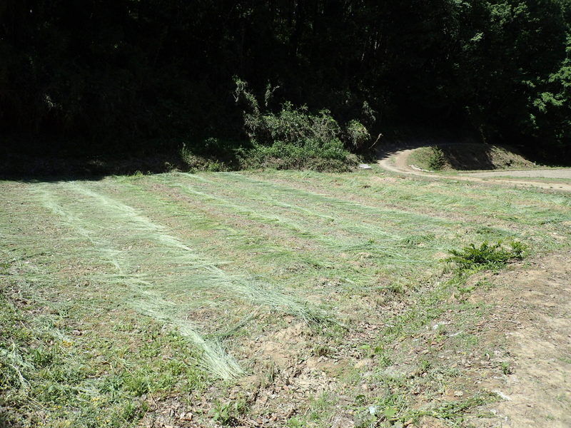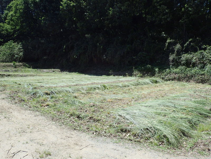 5月13日に刈った岩殿E地区の坂下の区画の草の量を推定してみました。A地区の畑に積み上げてあります。