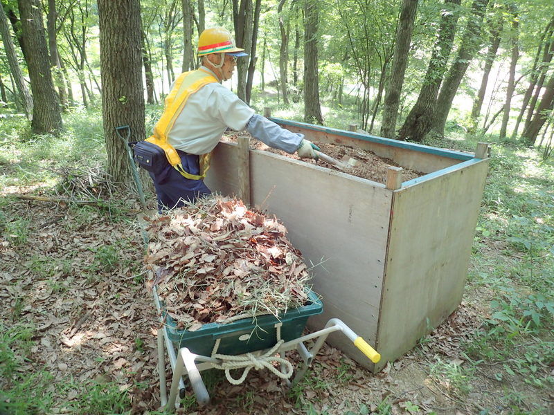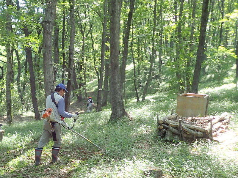 市民の森保全クラブ定例作業日。参加者は芦田さん、太田さん、金子さん、澤田さん、細川さん、鷲巣さん、渡部さん、Hikizineの8名でした。刈払機で林床の笹刈り。ササを選択的に刈り取ります。併行して堆肥箱にチップを積み込みました。澤田さんは入山沼のまわりの道路の草刈りをしました。
