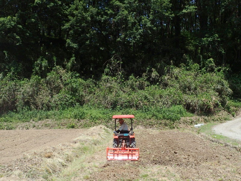 岩殿C地区の緑肥栽培をしてきた転換畑を岩殿入山田んぼの会の吉田さんが耕耘しました。