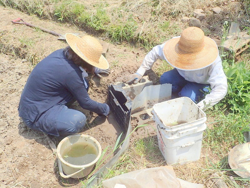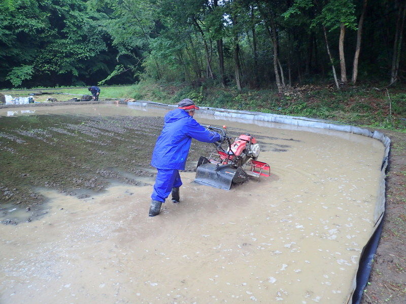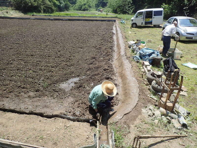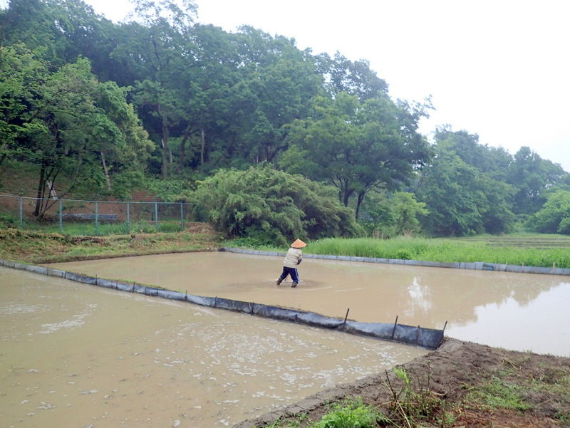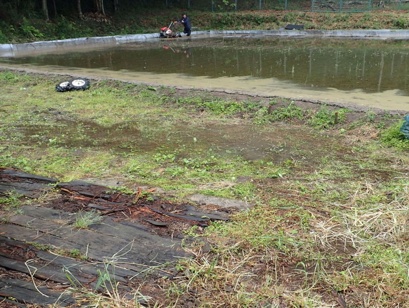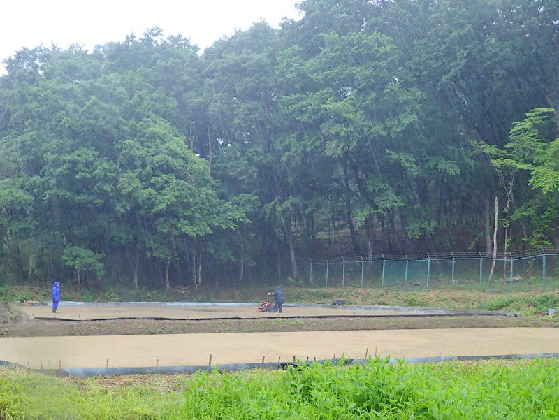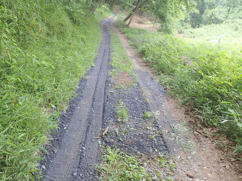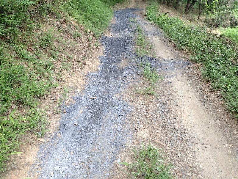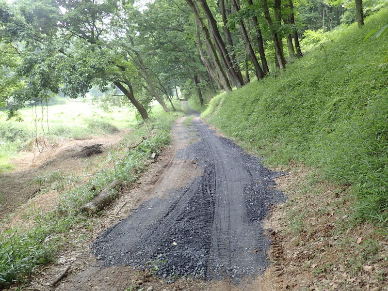 5月12日の市民の森保全クラブ定例作業日に東松山市役所都市計画課に要望した市民の森の作業道のぬかるみ対策工事が都市計画課+道路課により実施されました。市民の森保全クラブの活動日の駐車場は、入山沼付近は釣り人の駐車スペース、田んぼへ下りる路は農家の軽トラの進入路となる私道のため、市民の森作業道を抜けた岩殿C地区の岩殿満喫クラブの管理エリアを使っています。雨天には雨水が作業道を通って流れ、雨後には水たまりが残って、そこが車の通行によりぬかるみとなって、ハンドルがとられそうになる箇所もできて困っていました。梅雨の長雨の季節を控え、今回、土床材を敷き、さらに転圧作業がおこなわれたので、安心して通行ができるようになりました。ありがとうございます。