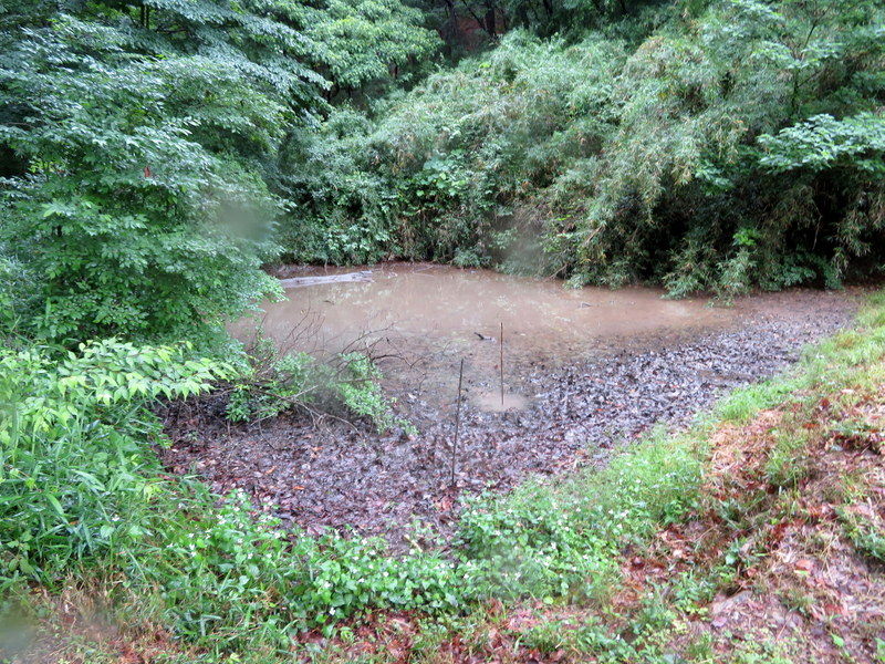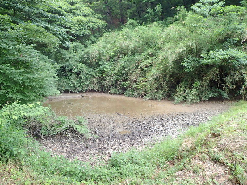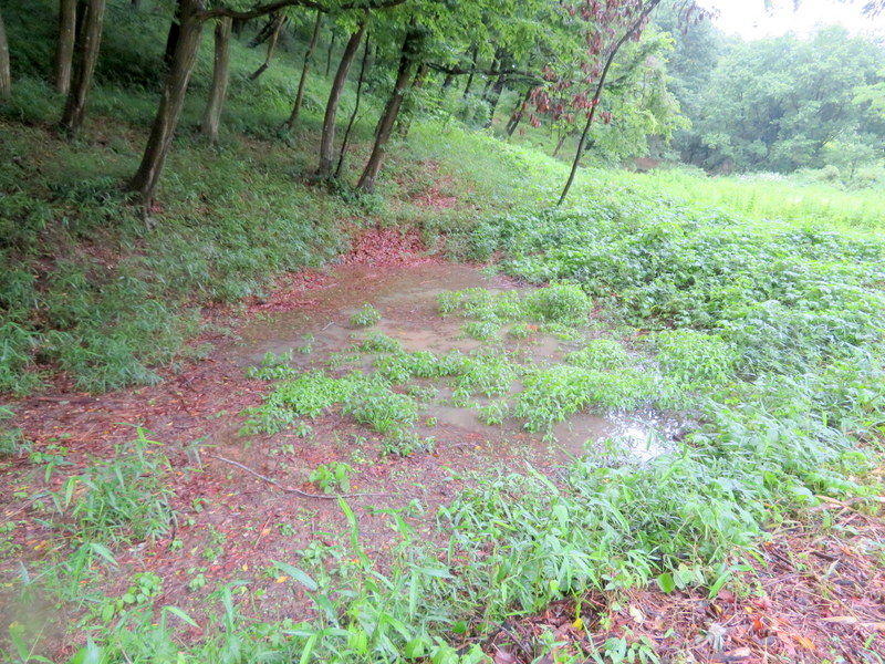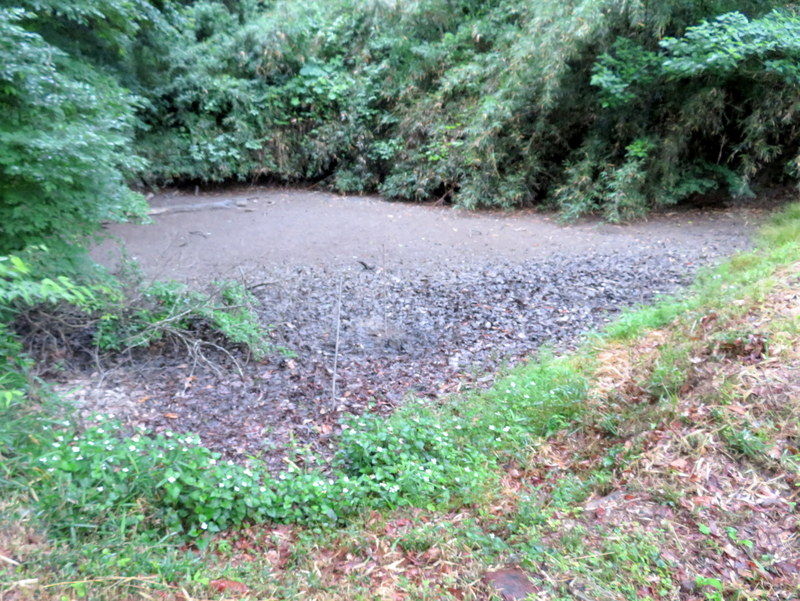 無名沼ロ号には水が溜まっていました。市民の森からの水が集まりやすい窪地にあるからでしょう。田んぼ沿いの水路からの水は入口を閉めているので入っていません。