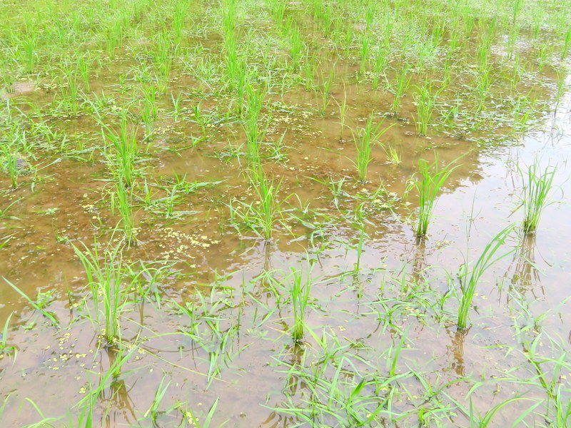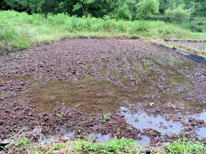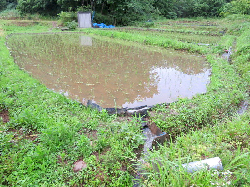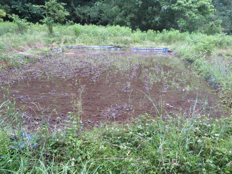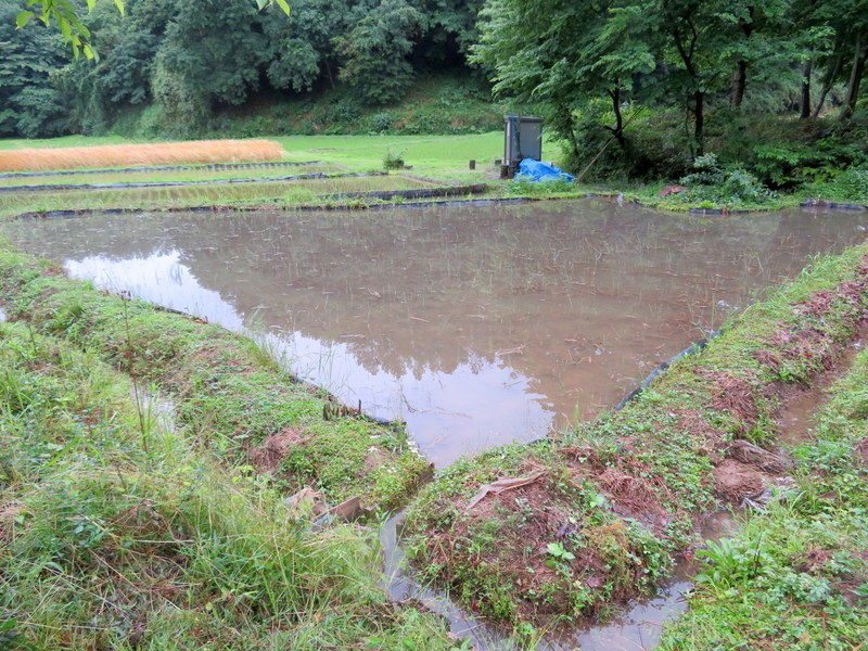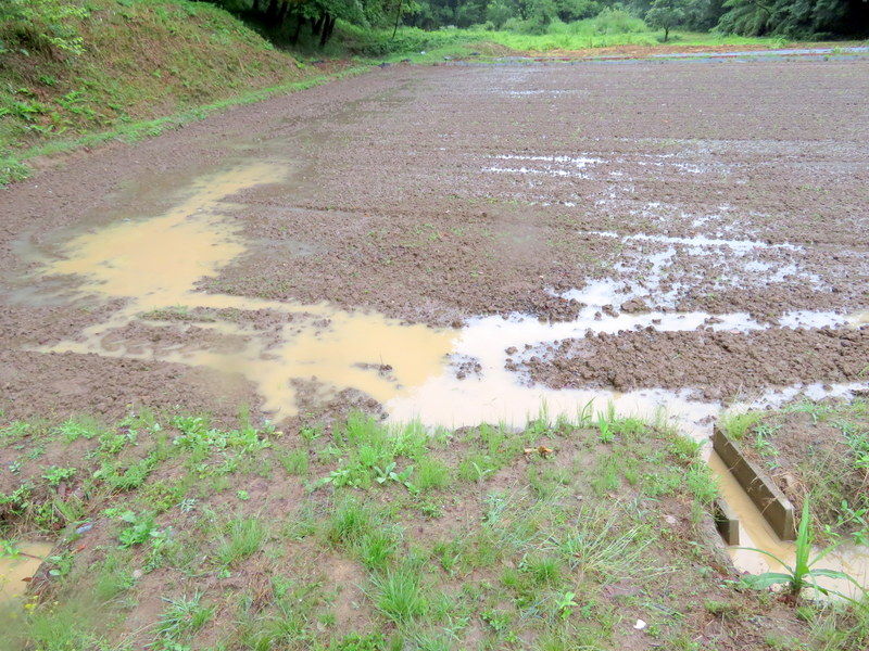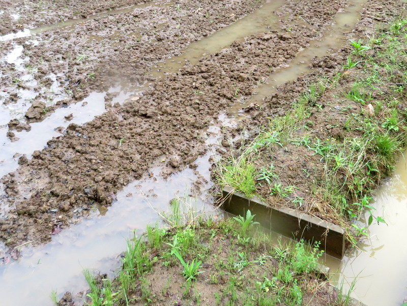 B地区の田んぼには水がたまっていました。雨の度に水口・水尻を手直ししていけば、貯水機能を高められそうです。