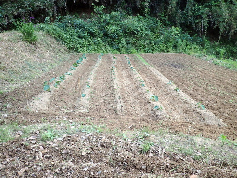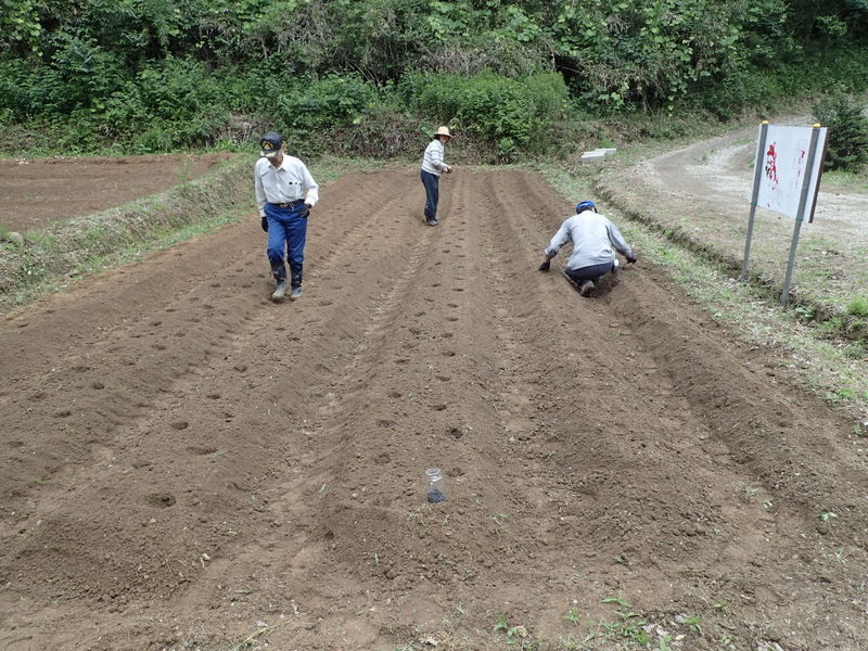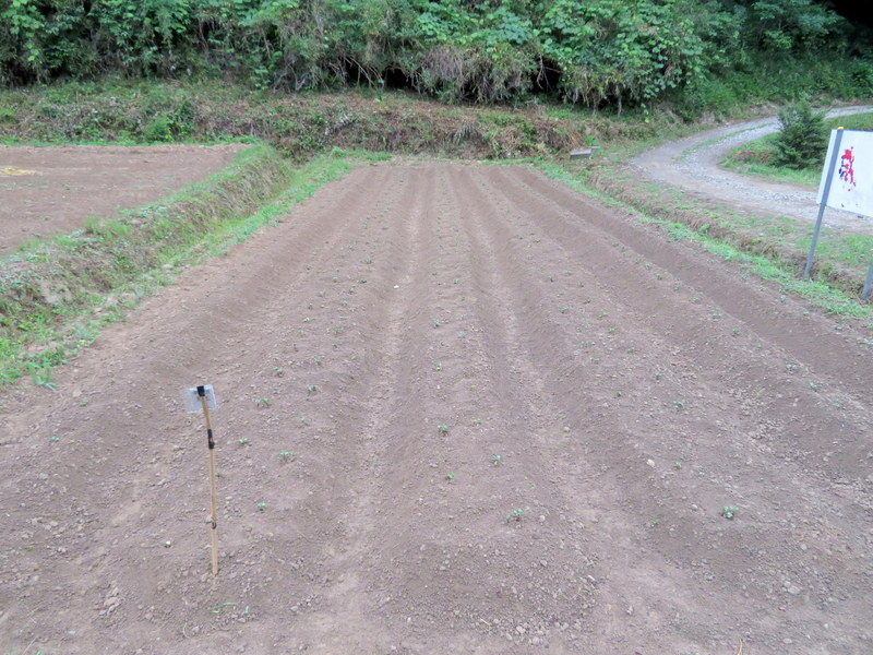岩殿C地区の下の段の畑に丹波黒豆、行田在来青大豆をまきました。青大豆は、1月28・29日に珈琲工房まつざわで開かれていた埼玉県在来大豆フェスティバルで買ったはせがわ農園産です。