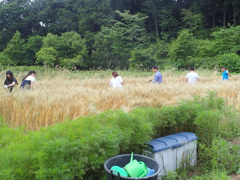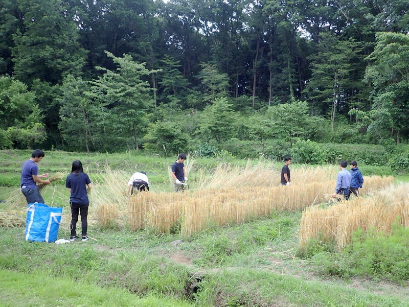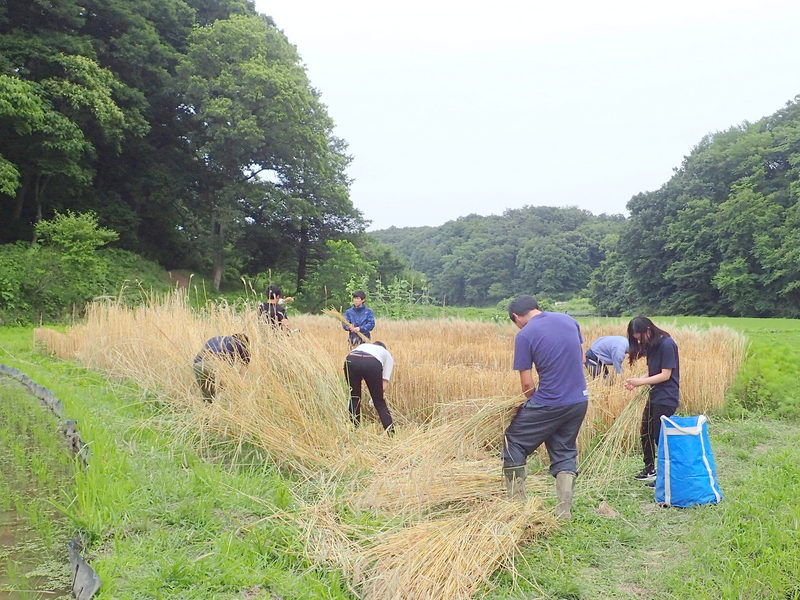 須田ゼミの実習で麦刈りをしました。昨年12月8日に播いたものです。今年は根元で刈らずに穂刈りして、革手袋やテニスラケットのネットで脱穀する方法を試してみました。足踏脱穀機は使いません。小麦を収穫しても、これまで製粉した経験はありません。初めてのことなので時間と労力、手間がかかると思いますが、お店で買った小麦粉ではなく、畑で刈ったものでパンを焼いてみたいという学生の要望は実現したいです。