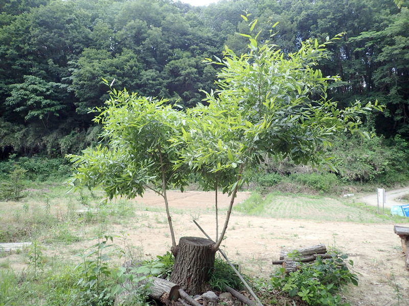 昼食後、岩殿C地区のベンチ・テーブル、物置周辺の草刈りと萌芽更新したクヌギのひこばえ(萌芽枝)のもやかき(間引き)をしました。