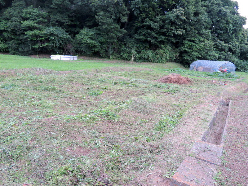 F地区の草刈り、ボッシュ林側をG地区の境までざっとしました。15日、17日で上から2段目まですませました。