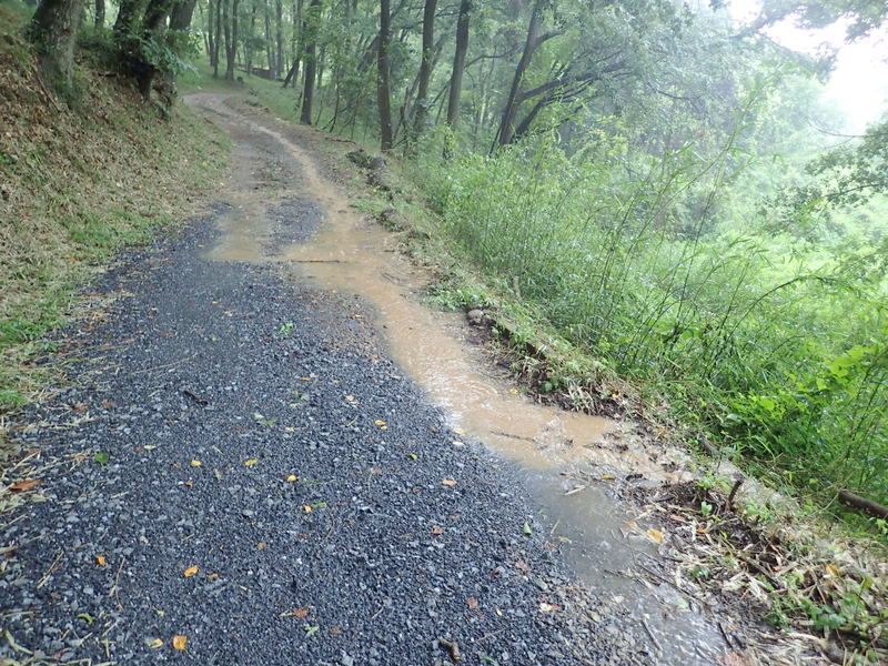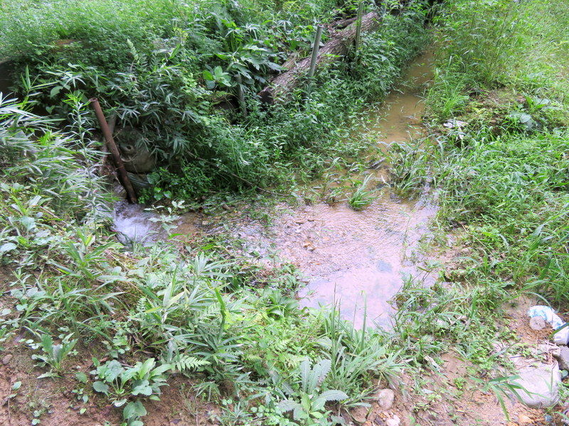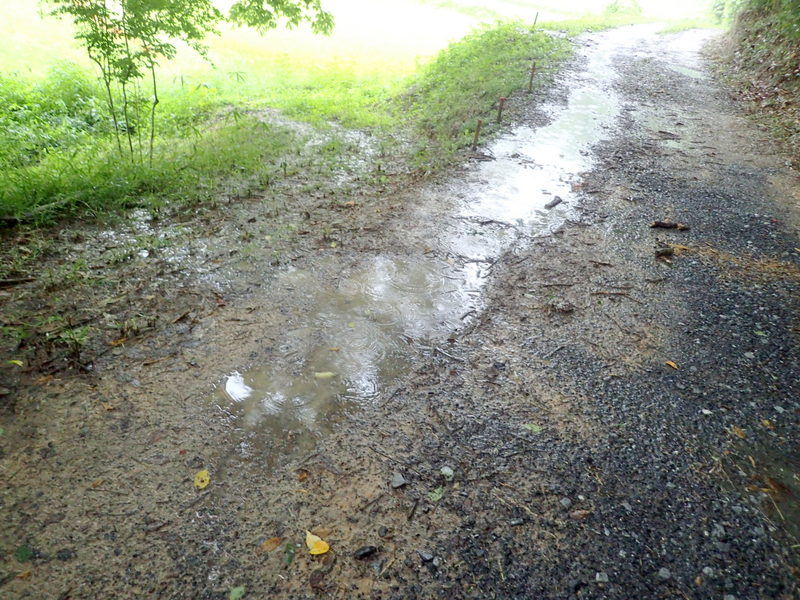 6日の夕方の降雨は、鳩山で36.5㎜、白山中学校で20㎜でした。岩殿C地区では、ボッシュ林側の水路に水が流れ田んぼにも水が入りホッとしました。ダイズ畑の畝間にも水がたまっていましたので、台風5号対策も合わせて排水溝を掘って排水しました。