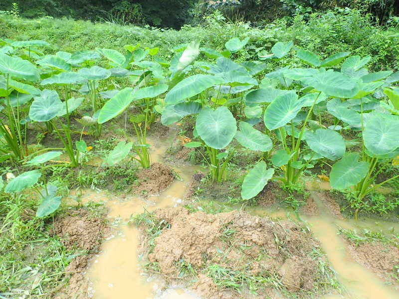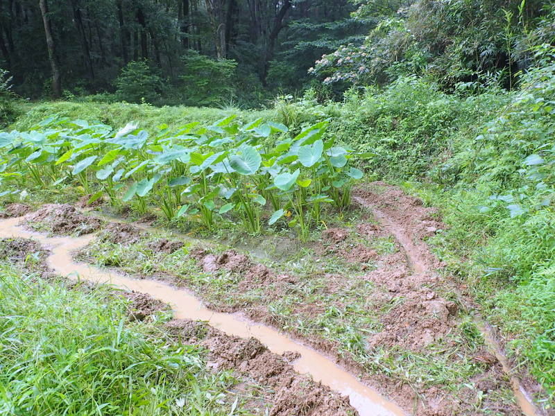 岩殿B地区の草に埋もれていたサトイモの除草をしました。