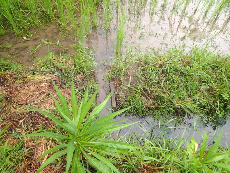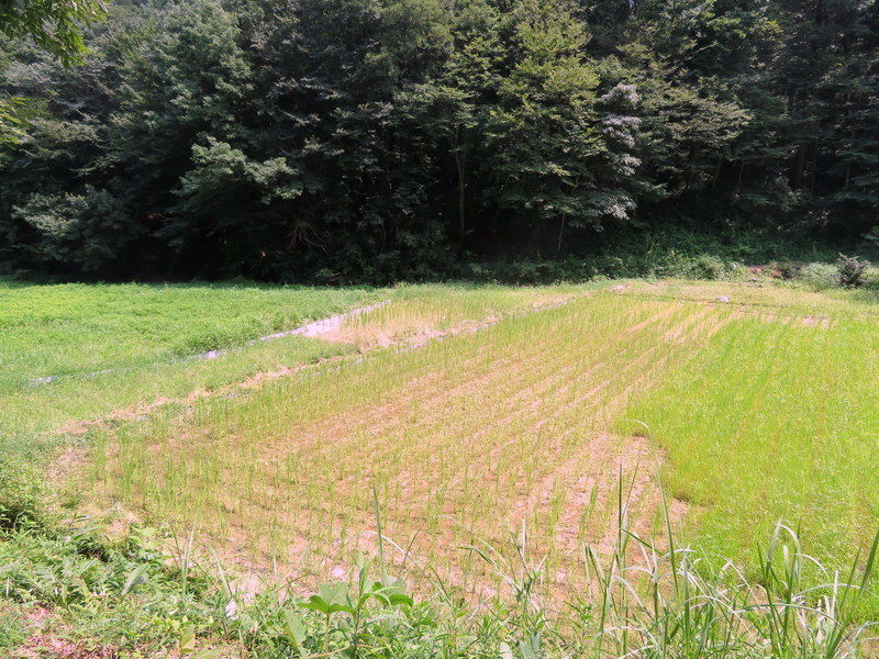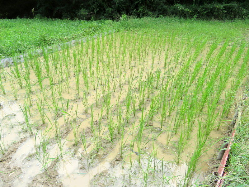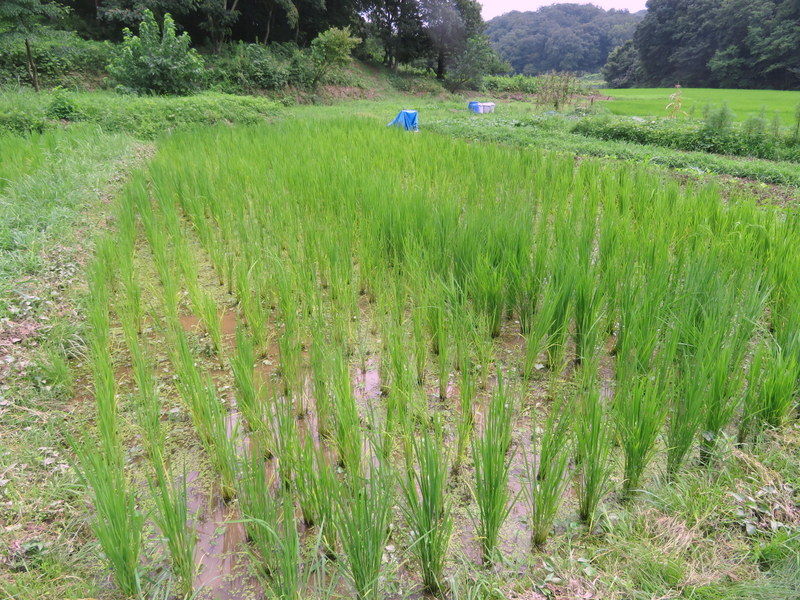 台風3号の降雨に期待して7月4日に補植した岩殿C地区の田んぼ。4日94.5㎜、6日11㎜(鳩山アメダス)の雨が降ったのですが、作業時間がとれずに田んぼに水を溜めることができず、その後の晴天で収穫を諦めて除草もせずに放置してきました。25~26日31.5㎜、29日29.5㎜、30日19.5㎜、8月1日34.5㎜と雨が降ったので除草すれば……という気持ちが頭をもたげてきますが、他のしなければならない作業や仕事と重なってまとまった作業時間が取れません。残念です。