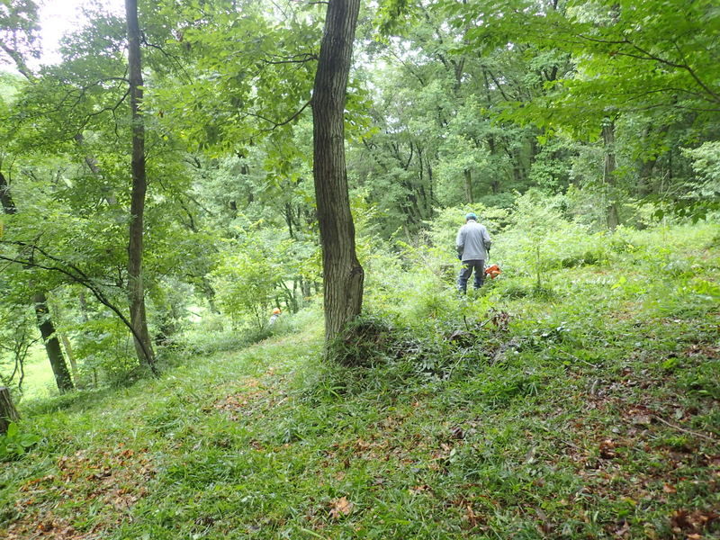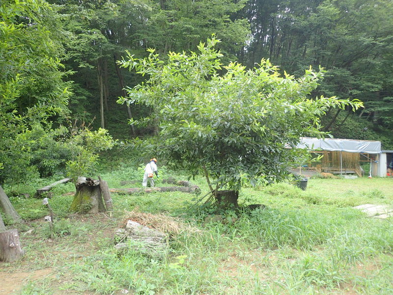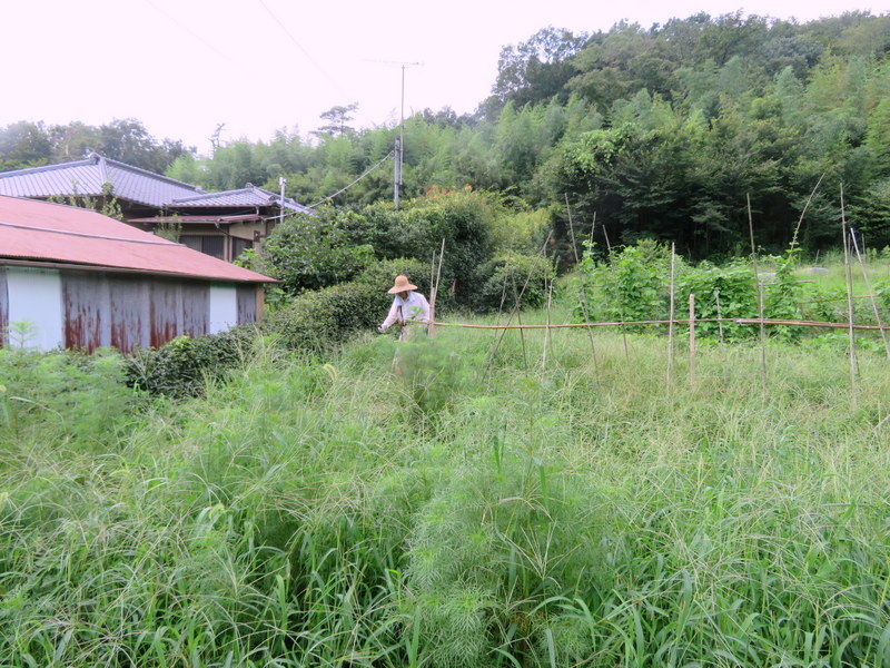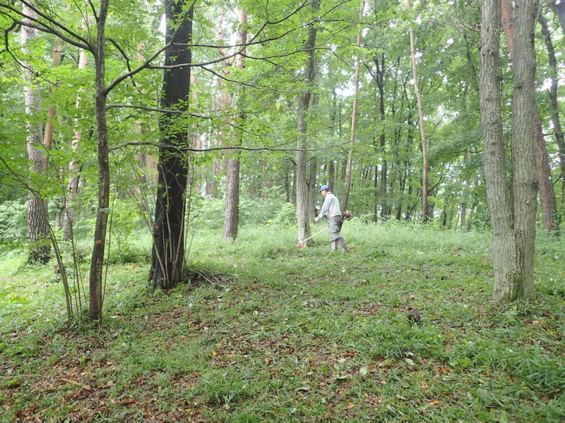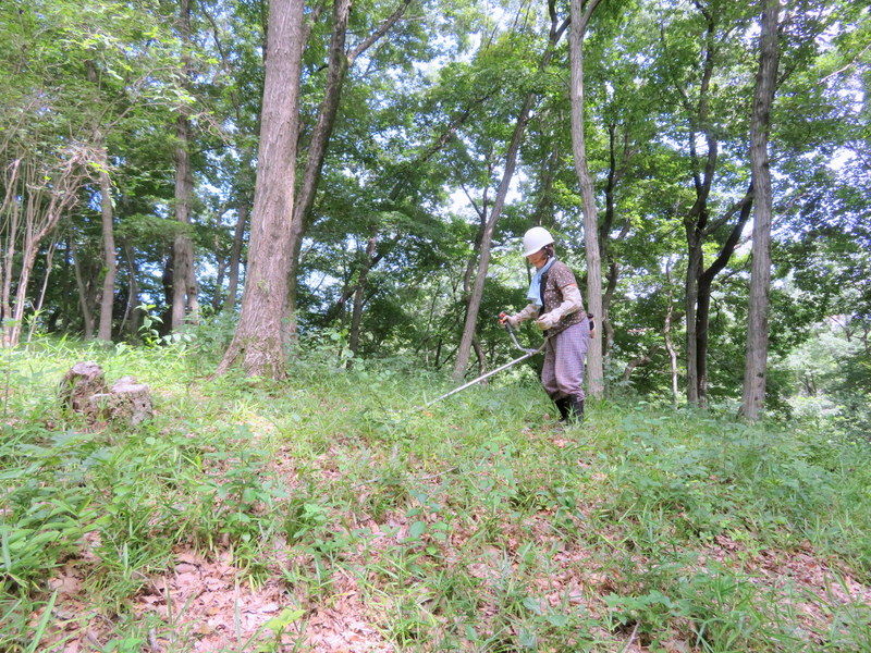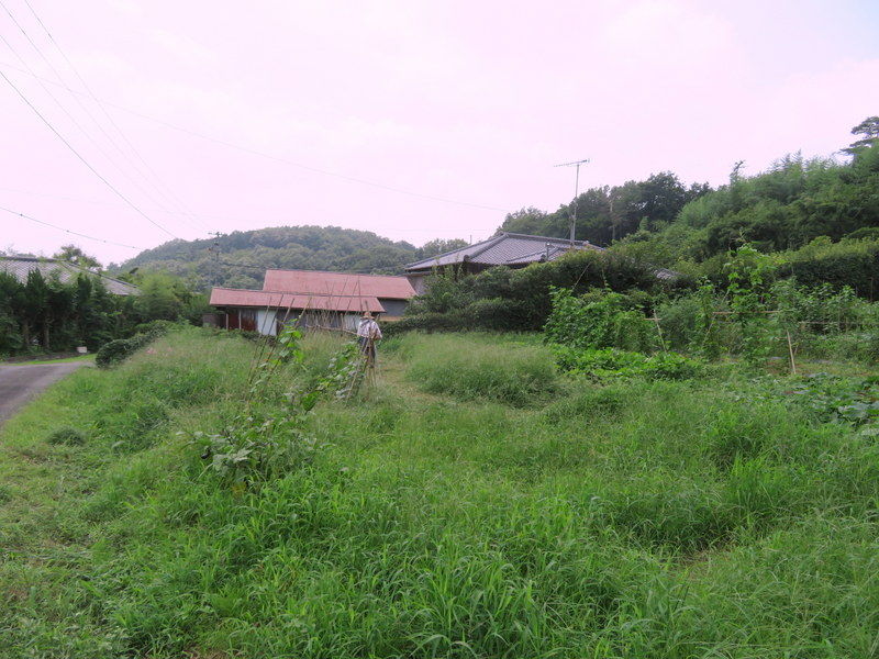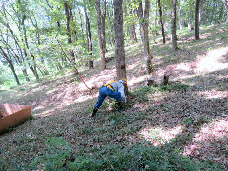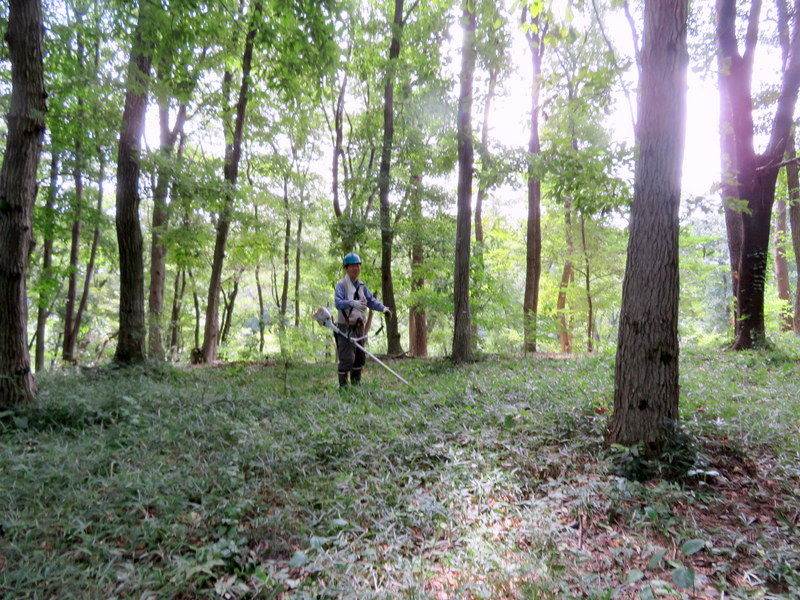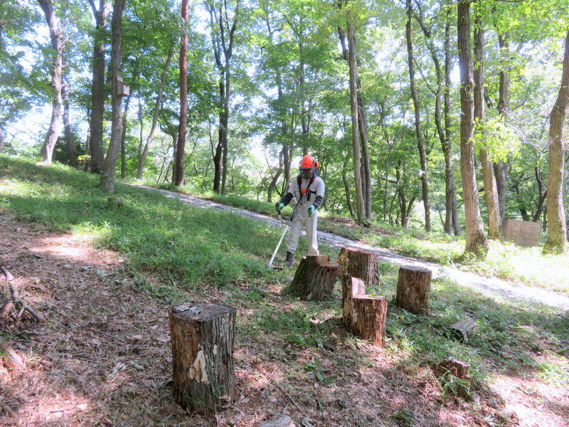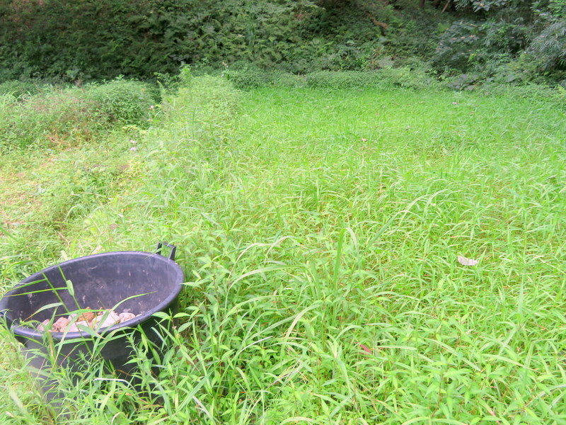 鎌で株元を刈ったあと、刈払機でまわりを除草しました。