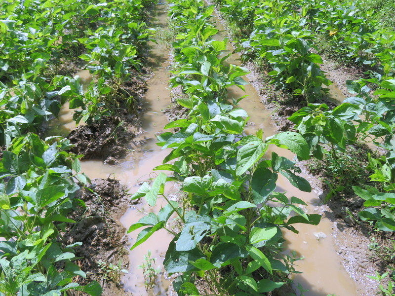 風で倒れ、水に浸かるものがでると思いますが、ダイズの冠水(水没)時の耐水時間は1日だそうです(→「冠水時(水没)の野菜の耐水性」)。