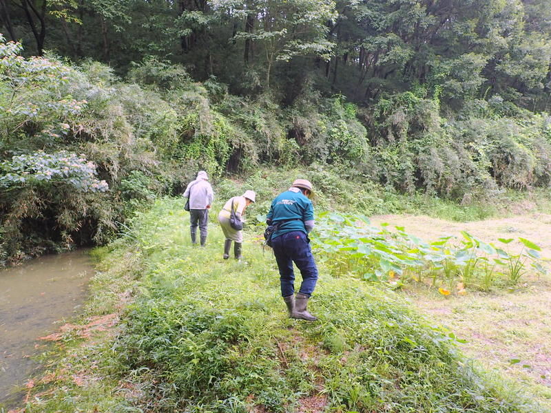 1) しばづけとさで網すくい採りで小型幼体を捕獲する