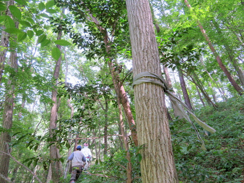 昨夜から今朝にかけて、鳩山のアメダスでは1㎜、白山中学校では2㎜の累加雨量が記録されています。市民の森保全クラブの定例活動日です。芦田さん、片桐さん、金子さん、草間さん、澤田さん、細川さん、鷲巣さん、渡部さん、Hikizineの9名が参加しました。午前中は、前回に続いて作業エリア南向き斜面の林床の下刈り。