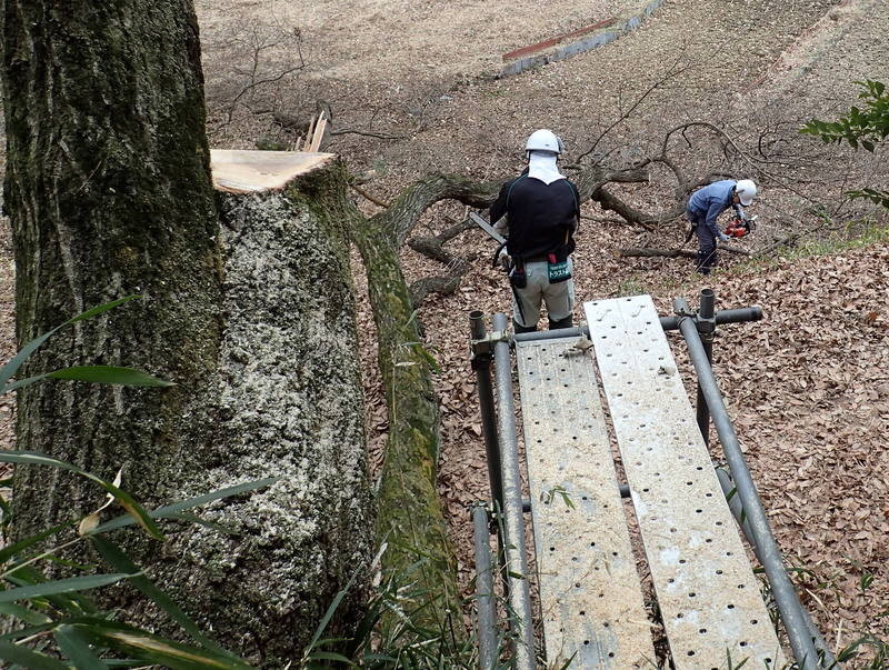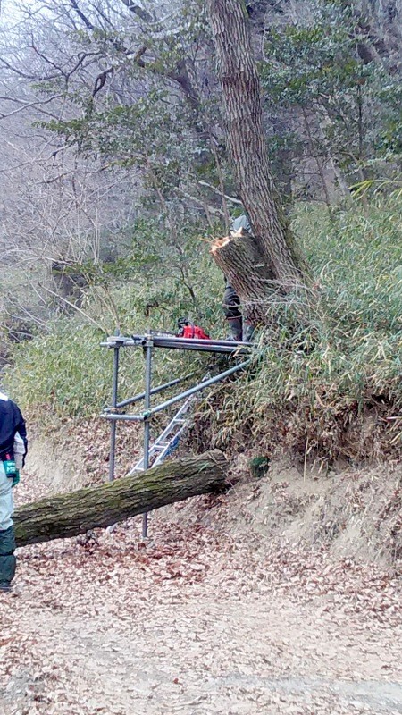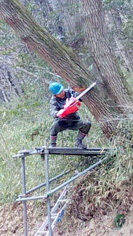 足場組み立てから伐採までの写真は金子さんがスマホで撮影したものをごらんください。