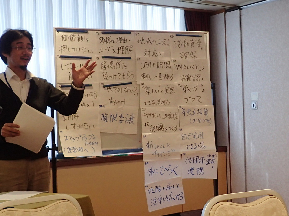 話題提供として「森林ボランティアの進化と変化 -森林づくり活動実態調査・分析結果と今後-」(筑波大学大学院 ・富井久義さん)、「森林ボランティアの未来」(NPO法人よこはま里山研究所・松村正治さん)がありました。