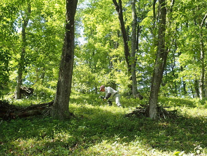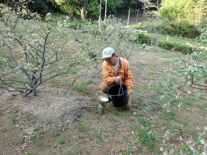 新しい噴霧器で木酢液を噴霧しました。