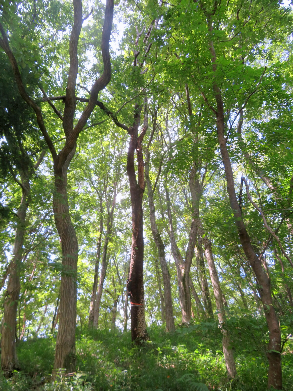 市内で記録されている7種類は、いずれもクヌギ、コナラ、クリといったブナ科の樹木を好み、そのため、それらが多く生育する雑木林で多く見られます。針葉樹を食べる種類は知られておらず、実際、スギの植林地などではヤママユガ科の蛾を見ることはありません。