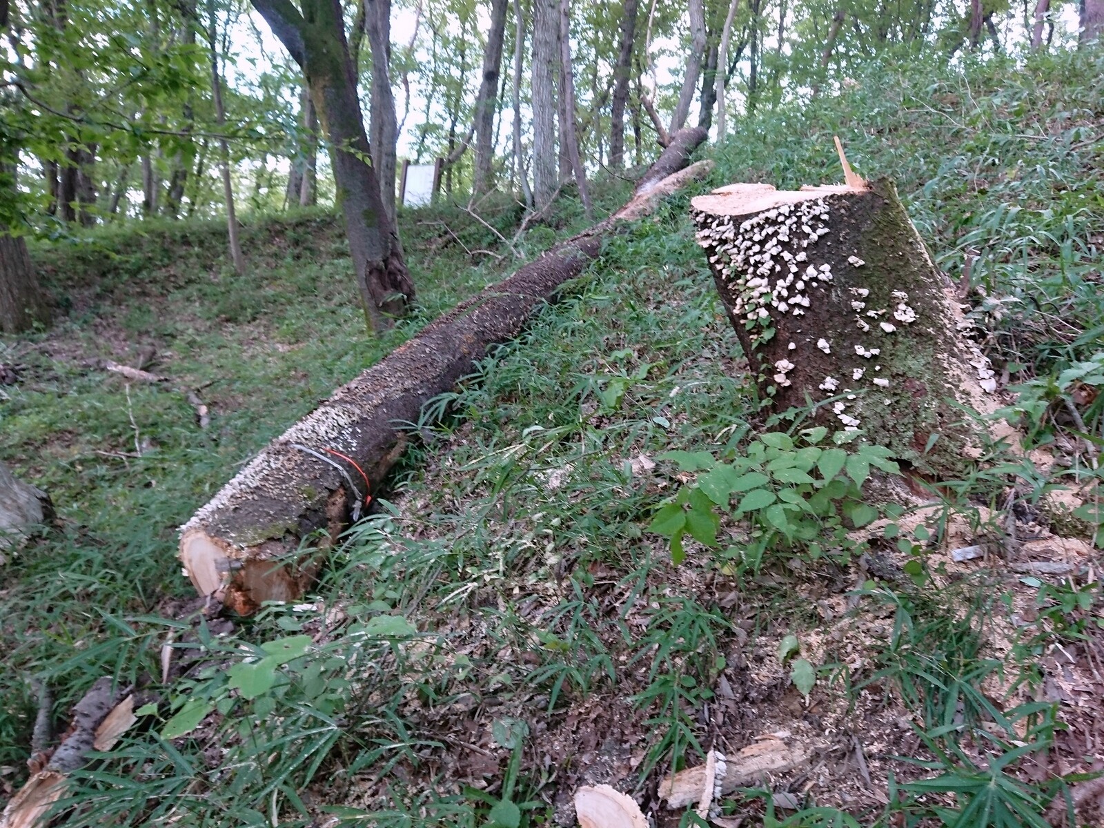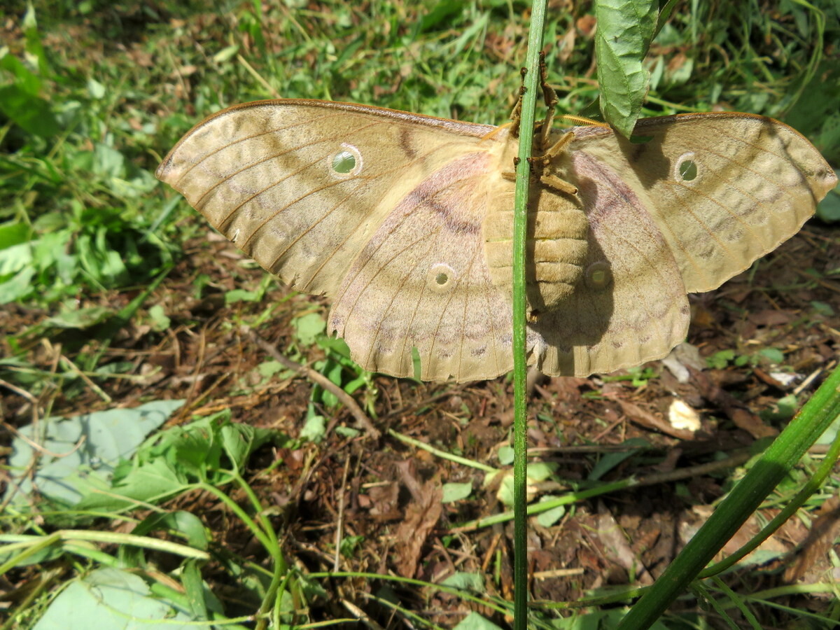 ヤママユガ科の蛾は、成虫になるとエサを取ることがなく、口も退化します。ということは一生の間でエサを取るのは幼虫の時期だけということになりますから、生活の場所も必然的に幼虫のエサがある場所ということになります。市内の場合、雑木林がその場所にあたります。