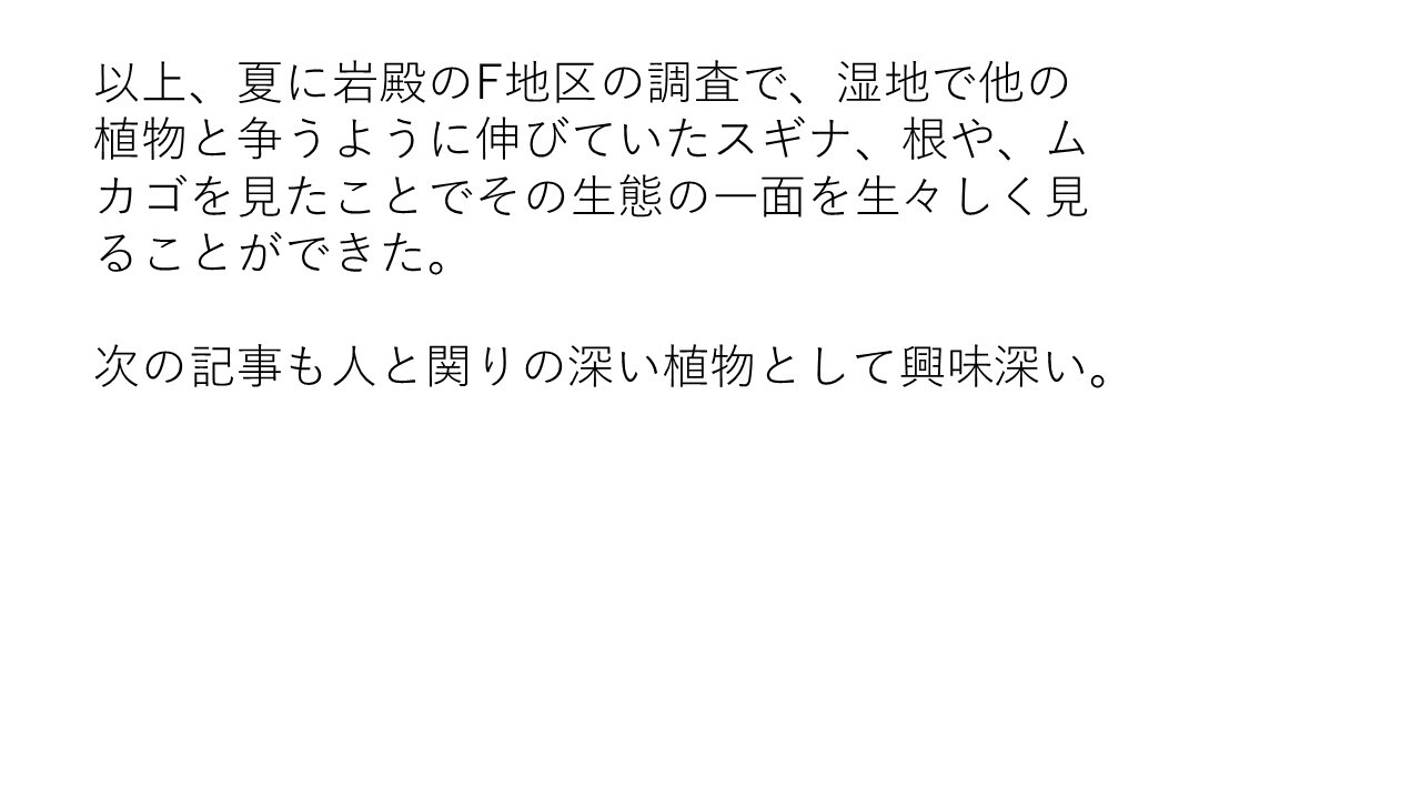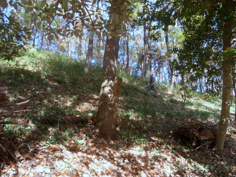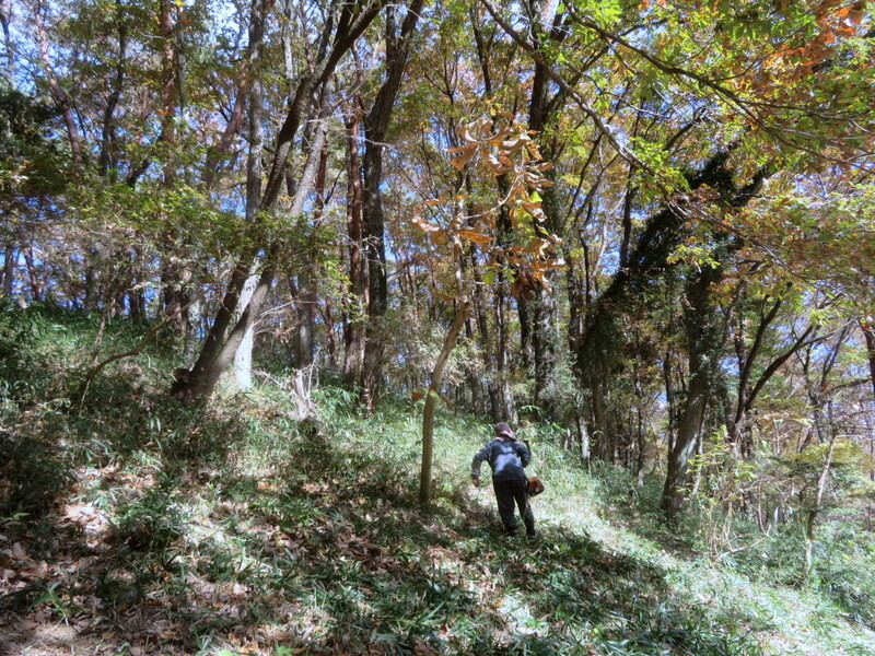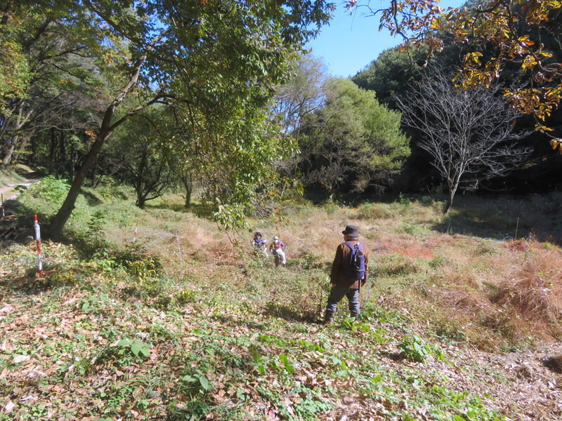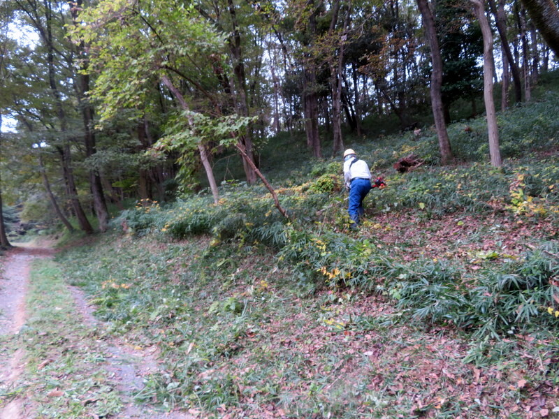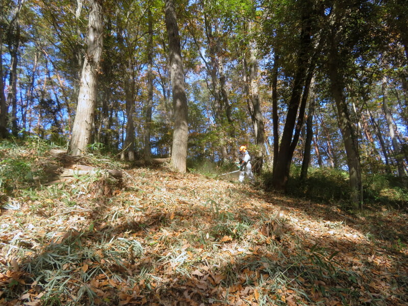 人間の管理を離れた耕作地は、元の生態系に復元されるのではなく、外来種の雑草が入りこんで繁茂し、また、雑木林も長期間放置された結果、樹高の高い巨木が占拠し、林床には耐陰性の常緑樹種やササ類が茂っています。この様な状態ではカタクリなどの林床植物や草花に訪れる昆虫類、そのほかの小動物が生息できず、生物多様性の劣化することになります。