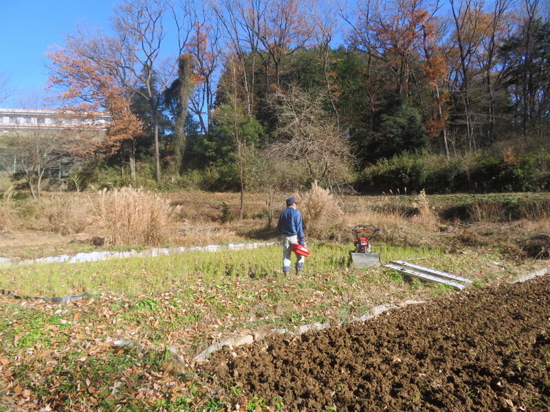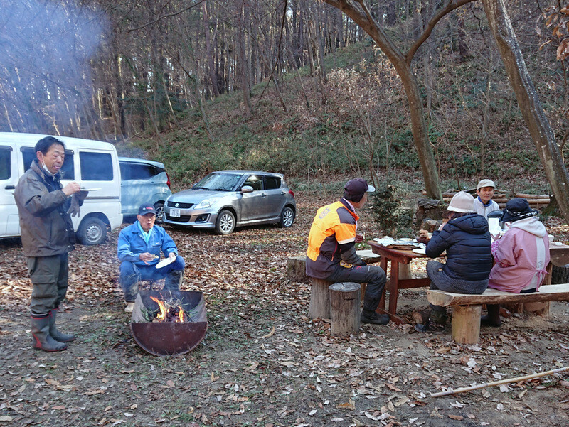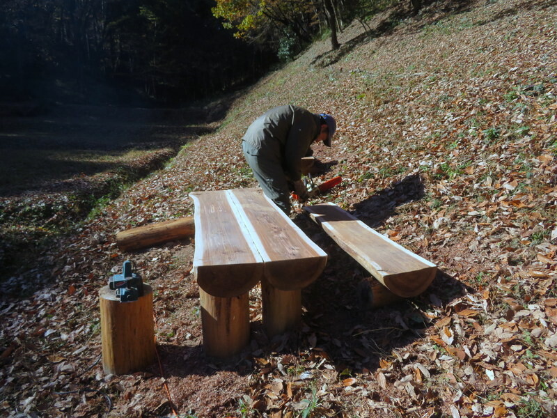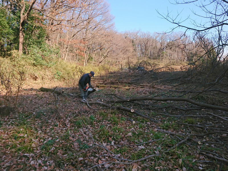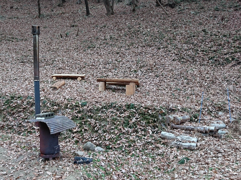 12月第1週の定例作業日です。参加者は金子さん、澤田さん、鳥取さん、細川さん、渡部さん、Hikizineの6名でした。渡部さんは新エリアのベンチ・テーブルを電動サンダーで仕上げ、C地区の古いベンチ・テーブルを片づけました。