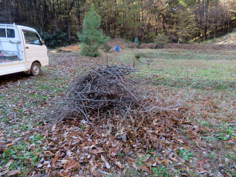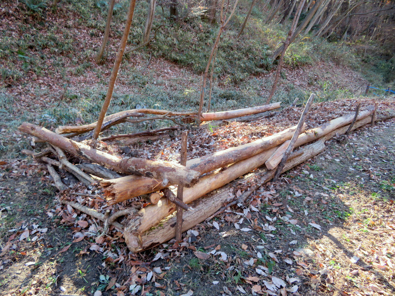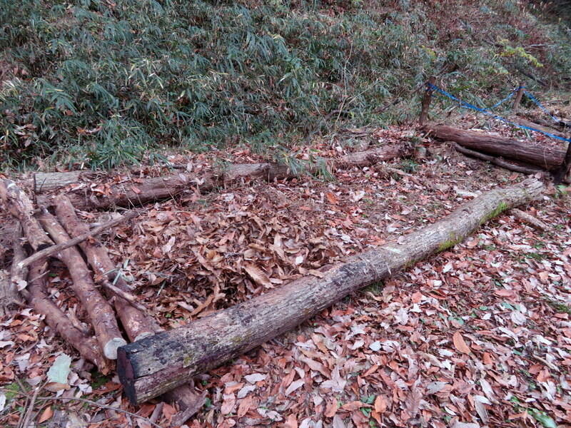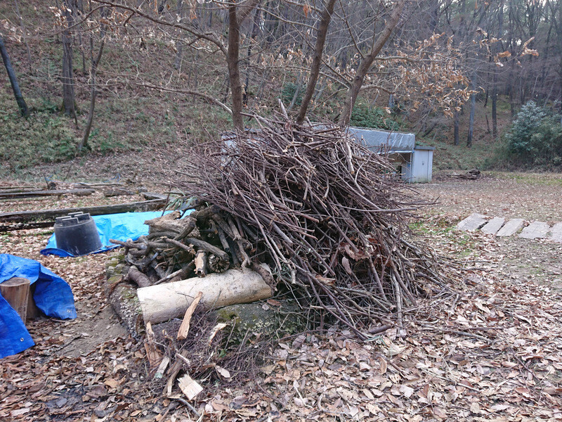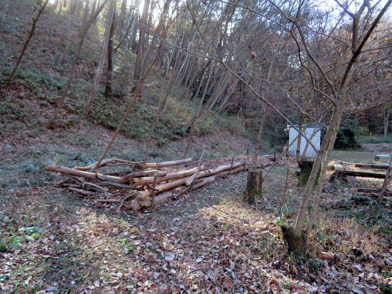 小さい物置の裏に積んでいた2017年の中止となったイベント用の20㎝のミニホダ木を片づけ、ワラビ園の手前のコナラの苗木置場に移動しました。