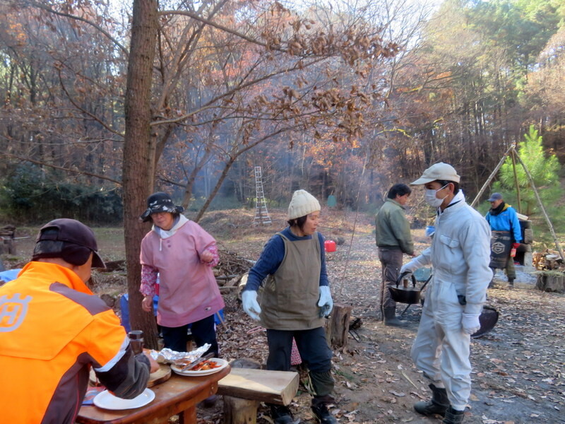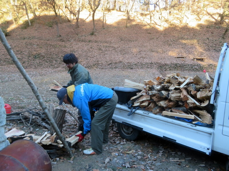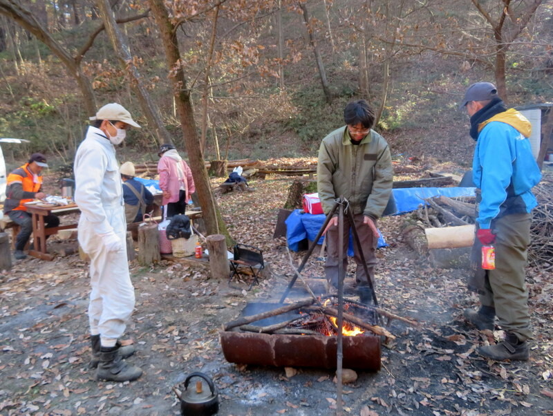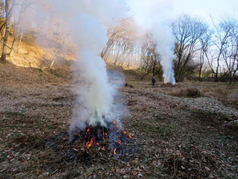 寒くなって来ると市民の森保全クラブの作業日にはたき火は欠かせません。薪にする枯枝を集めました。