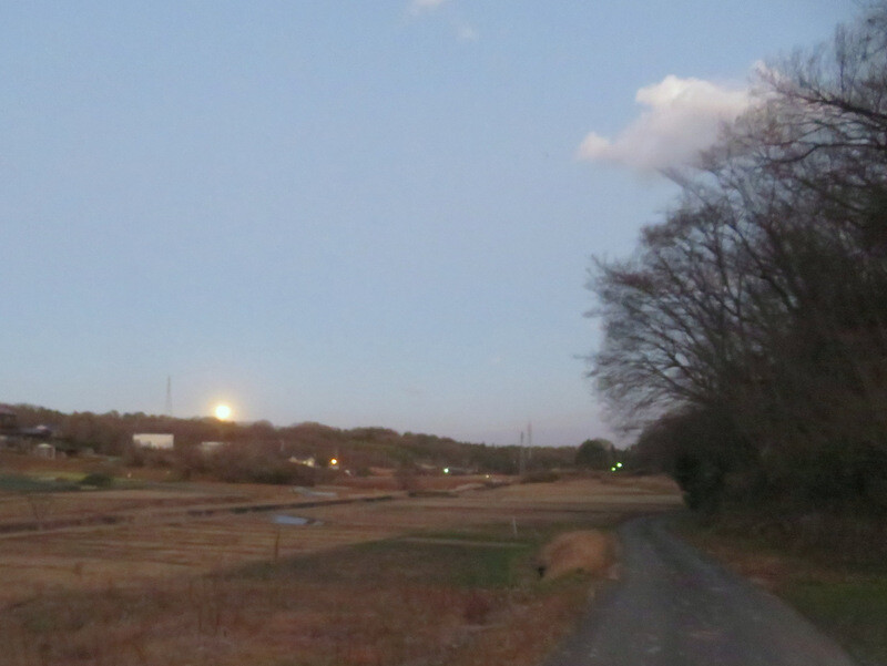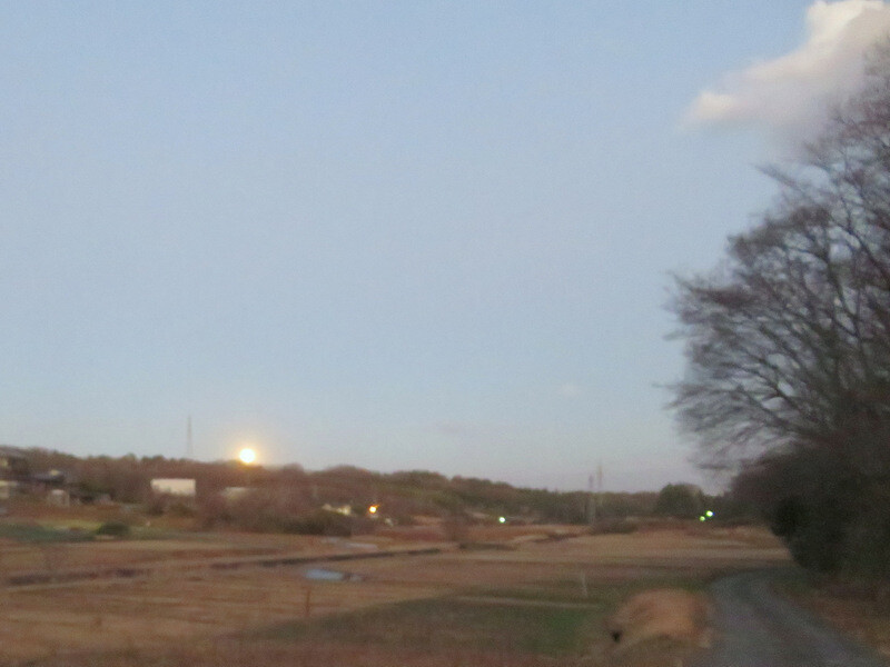帰宅途上、青木ノ入で月が東の空に昇っていくのを眺めました。満月です。