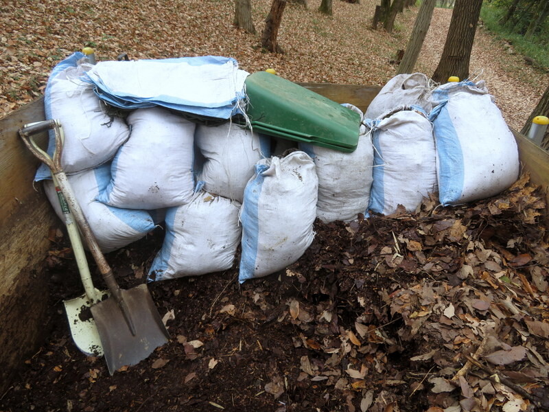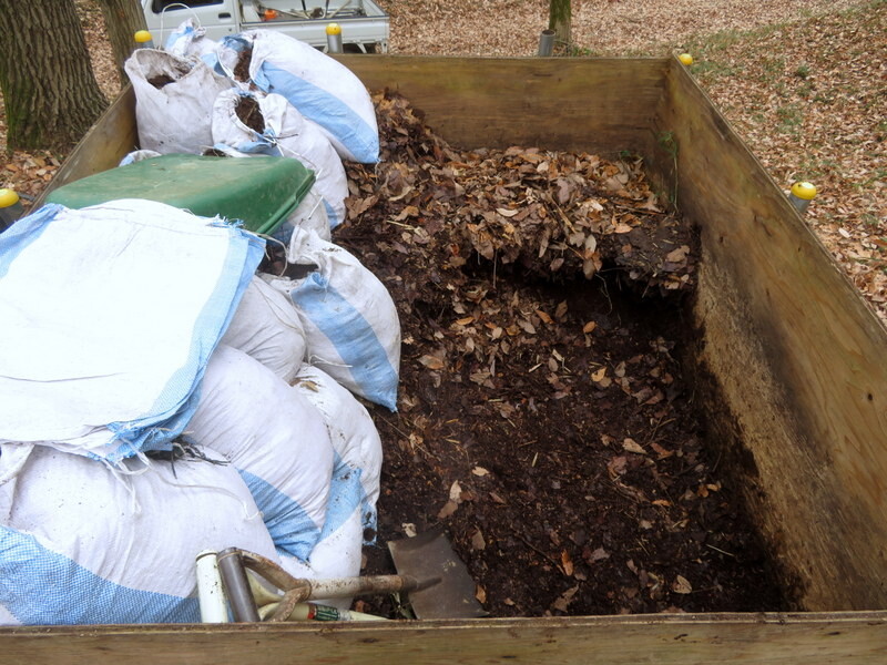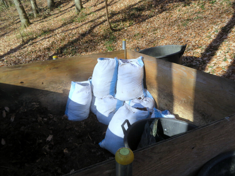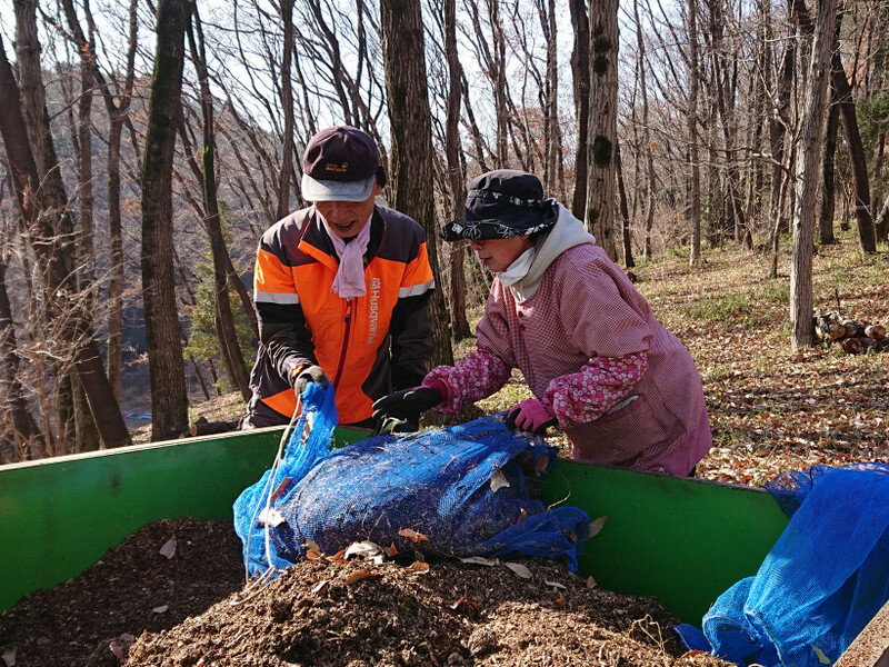 市民の森保全クラブの2020年最後の活動日です。参加者は、新井さん、片桐さん、金子さん、木庭さん、澤田さん、鳥取さん、細川さん、渡部さん、Hikizineの9名と、薪の端材を持ってきてくれた田島さんでした。今年は文化まちづくり公社の皆さんと6月12日、10月2日、16日の3回、チッパー作業をしました。チップは6月12日はメッシュの落葉袋に、10月2日はメッシュの落葉袋に詰めて落ち葉堆肥箱に、16日は落葉袋に詰めました。今日は尾根道のアカマツ林付近においてあったチップの袋を、キャリアカートと一輪車に載せて四阿近くの落葉堆肥箱に空けました。
