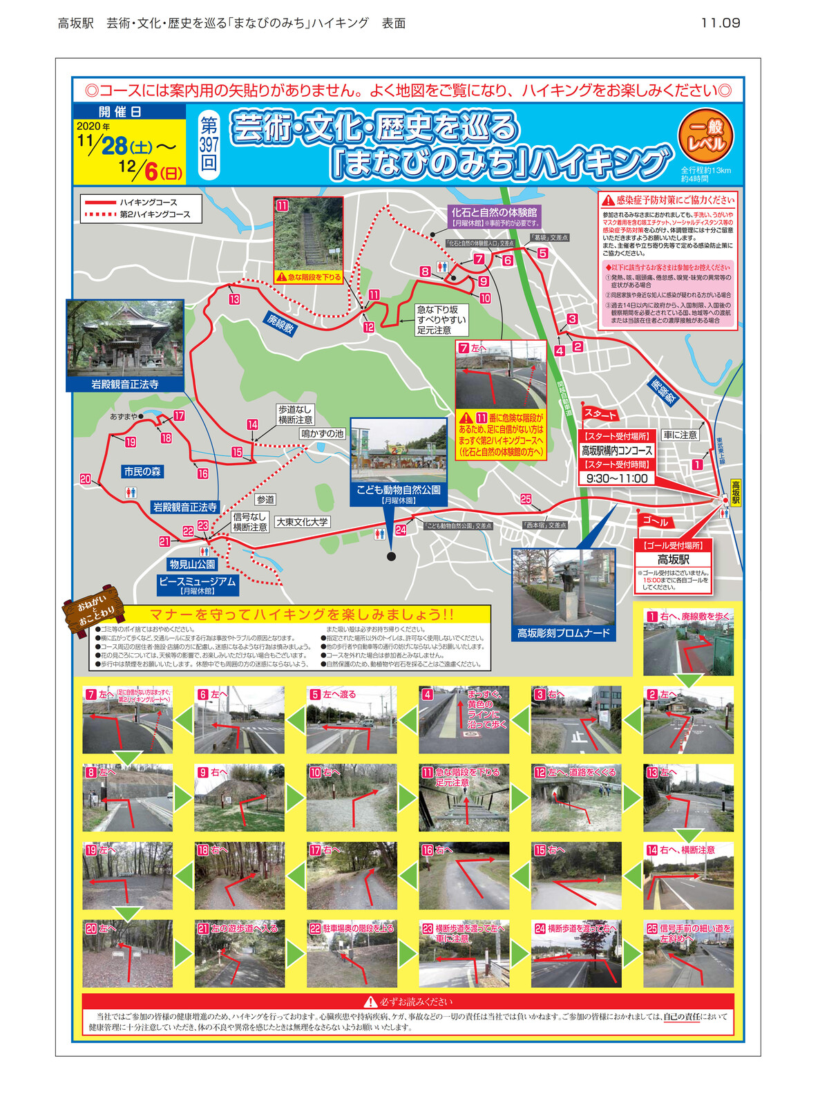 東武健康ハイキング第397回 芸術・文化・歴史を巡る「まなびのみち」ハイキング が開催されています。高坂駅構内(受付)ー廃線敷(高坂駅~ばんどう山緑地)ー市民の森ー岩殿観音ー物見山ー埼玉ピースミュージアムーこども動物自然公園ー高坂彫刻プロムナードー高坂駅(ゴール)のコースで、12月6日(日曜日)まで開催されます。受付時間は9:30~11:00まで。市民の森もハイカーでにぎわっていました。