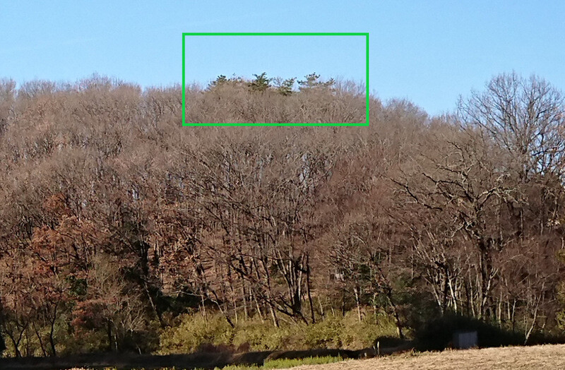 尾根に生えているので、コナラ林の上に梢が出ています。
