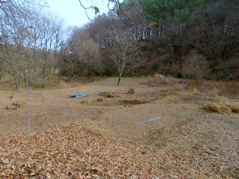 岩殿の耕作放棄地の9名の地主さんにこの1年間のお礼と活動報告をして、3時頃から植物調査区の枯草を刈り取りました。今日からボッシュ林側(岩殿1382)です。ヤナギが2本生えているところまでしました。