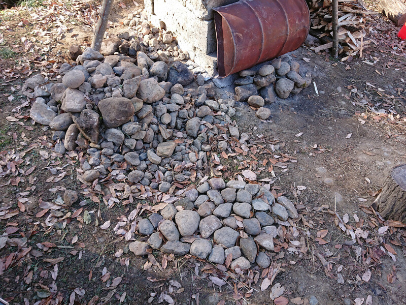 入山谷津には河川堆積物とみられる礫が多数あります。礫を拾ってピザ釜の側に追加しました。