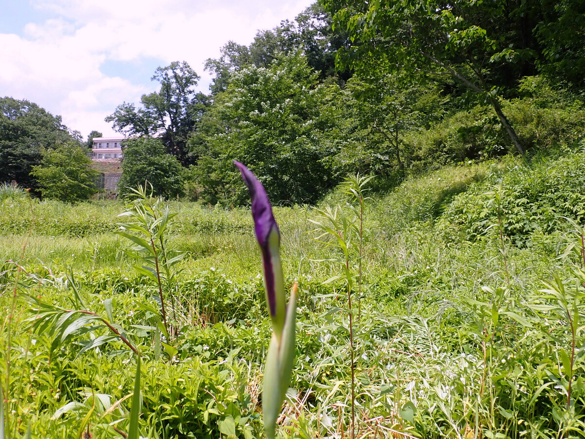入山沼下のキショウブはこれ以上、分布が拡大しないように刈り取りや花茎の摘み取りをしています。今日はD地区とI地区で花茎29本を切除しました。