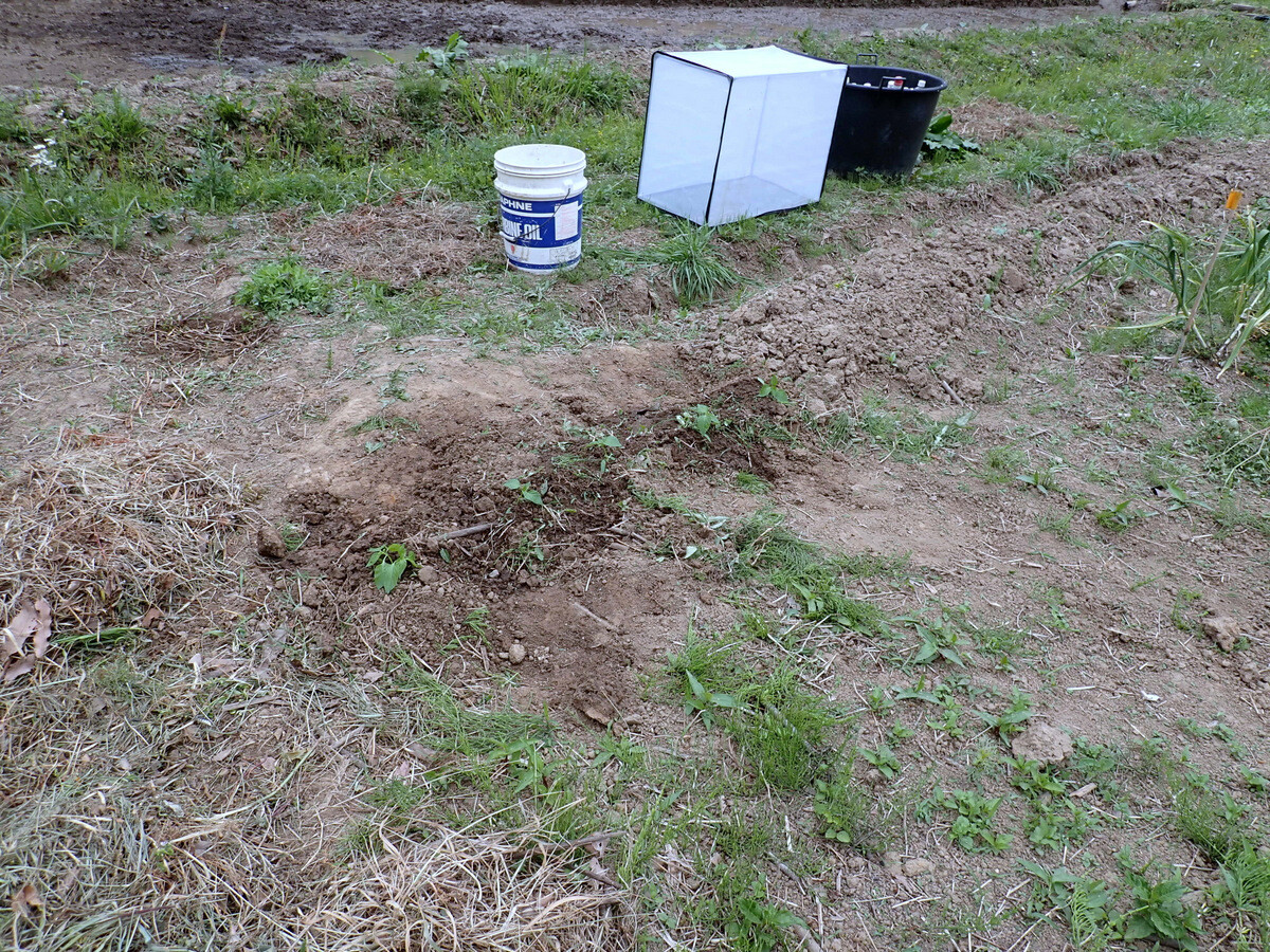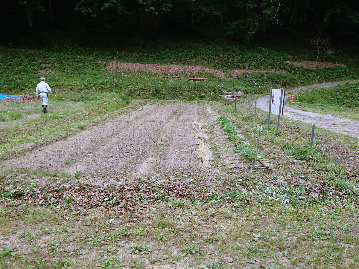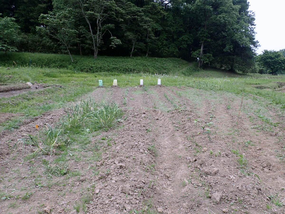 須田ゼミの畑。今日はパプリカの苗を植えました。須田先生が種から育てたものだそうです。土を寄せて鞍つきにしてあるカボチャの苗にウリハムシ除けのあんどんを立てました。(→昨年6月14日の記事)