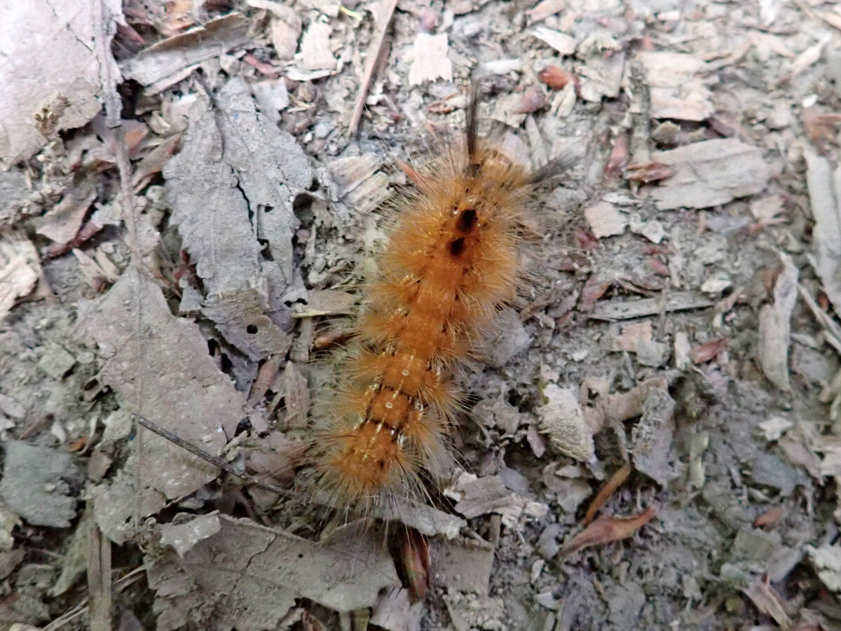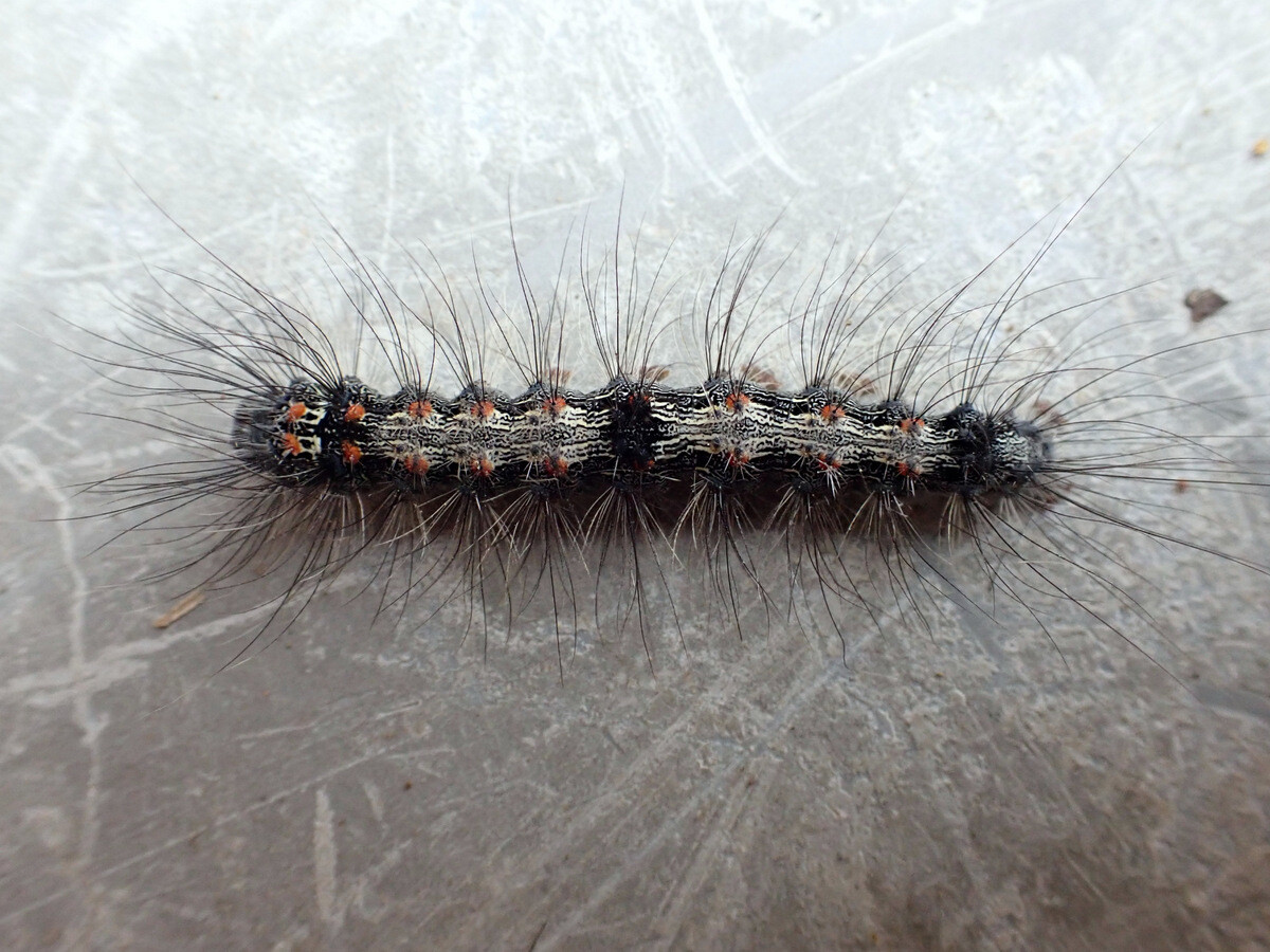 シデの幹にいた毛虫はヨツボシホソバ(ヒトリガ科)の幼虫でした。