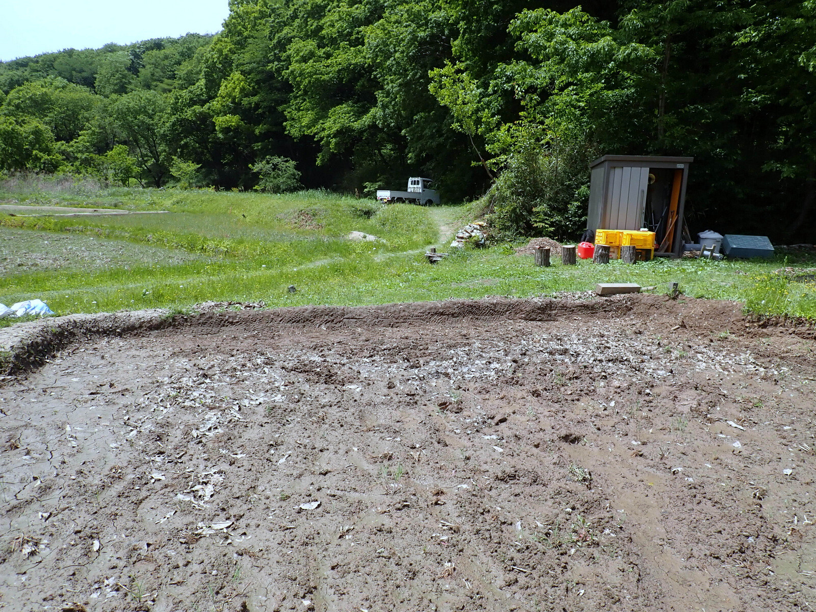 昨日は上空に流れ込む強い寒気の影響で雨雲が発達、急な雷雨や降雹がありました(鳩山アメダスの日積算降水量は4㎜)。岩殿A地区の下の田んぼの畦塗りをするつもりで出掛けましたが、田んぼの土が一昨日と同様に乾いているので諦め、手をつけるつもりがなかった下と中の田んぼの畦切りをして畦に開いてる穴を塞ぎました。中の田んぼは畦塗りができそうです。