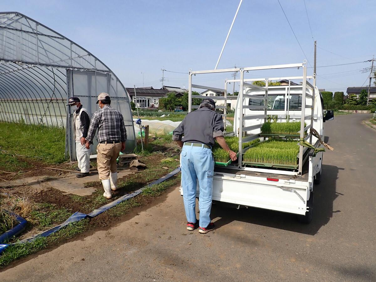 14日に続いて、殿山共同農場の高野さんの仲介で確保できたコシヒカリ10箱と彩のかがやき20箱を熊谷市と吉見町の農家から児沢の田んぼに運びました。毛塚一反田、児沢、岩殿の田んぼで使います。ありがとうございました。