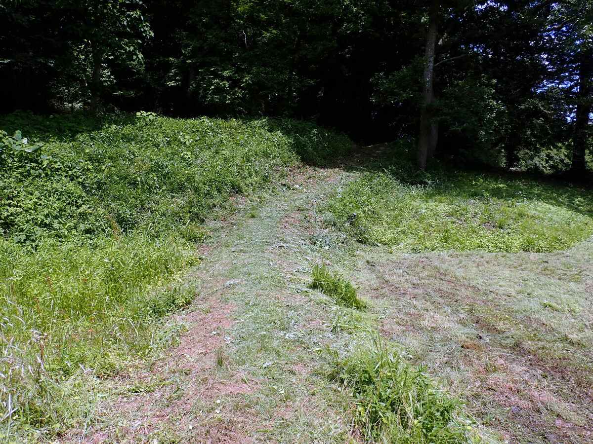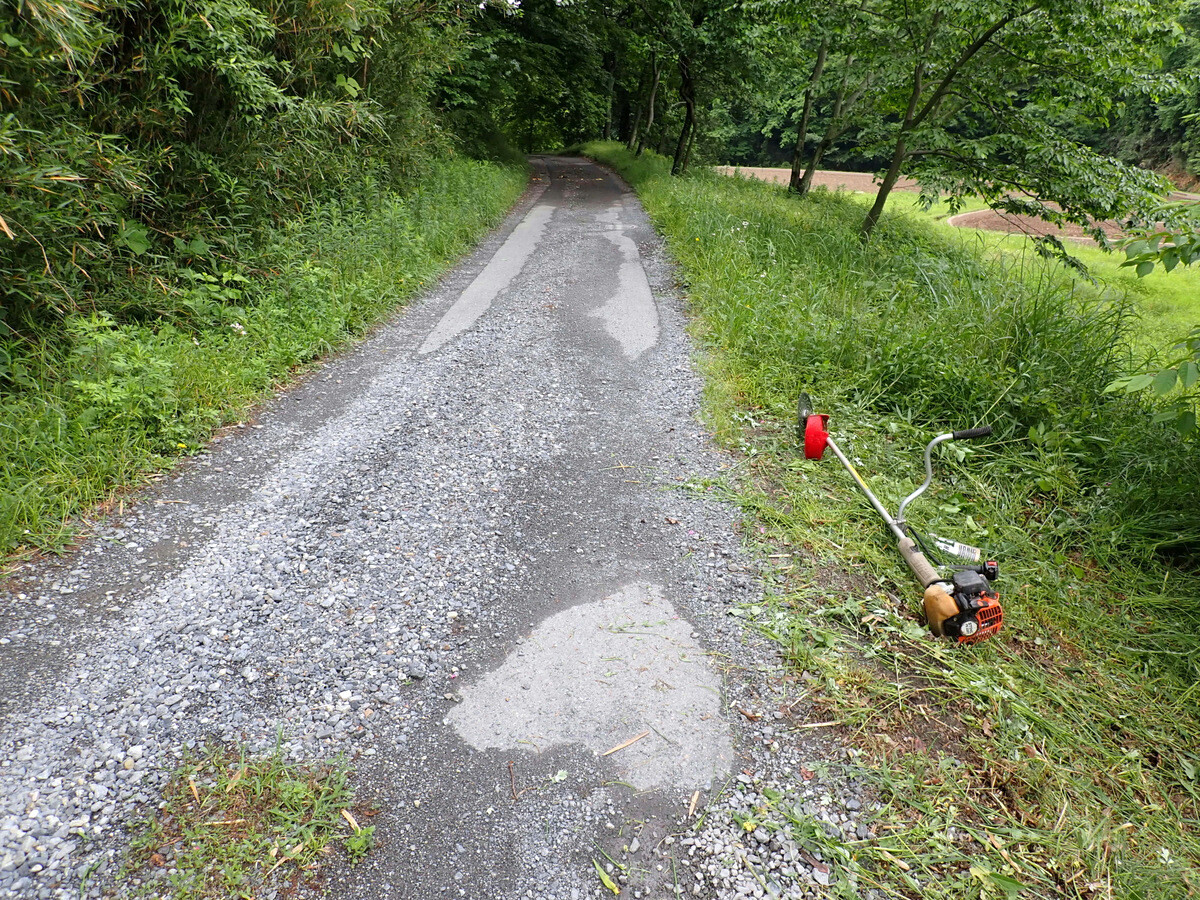 学びの道から岩殿D地区に除草機を下ろす道の草刈りをしました。